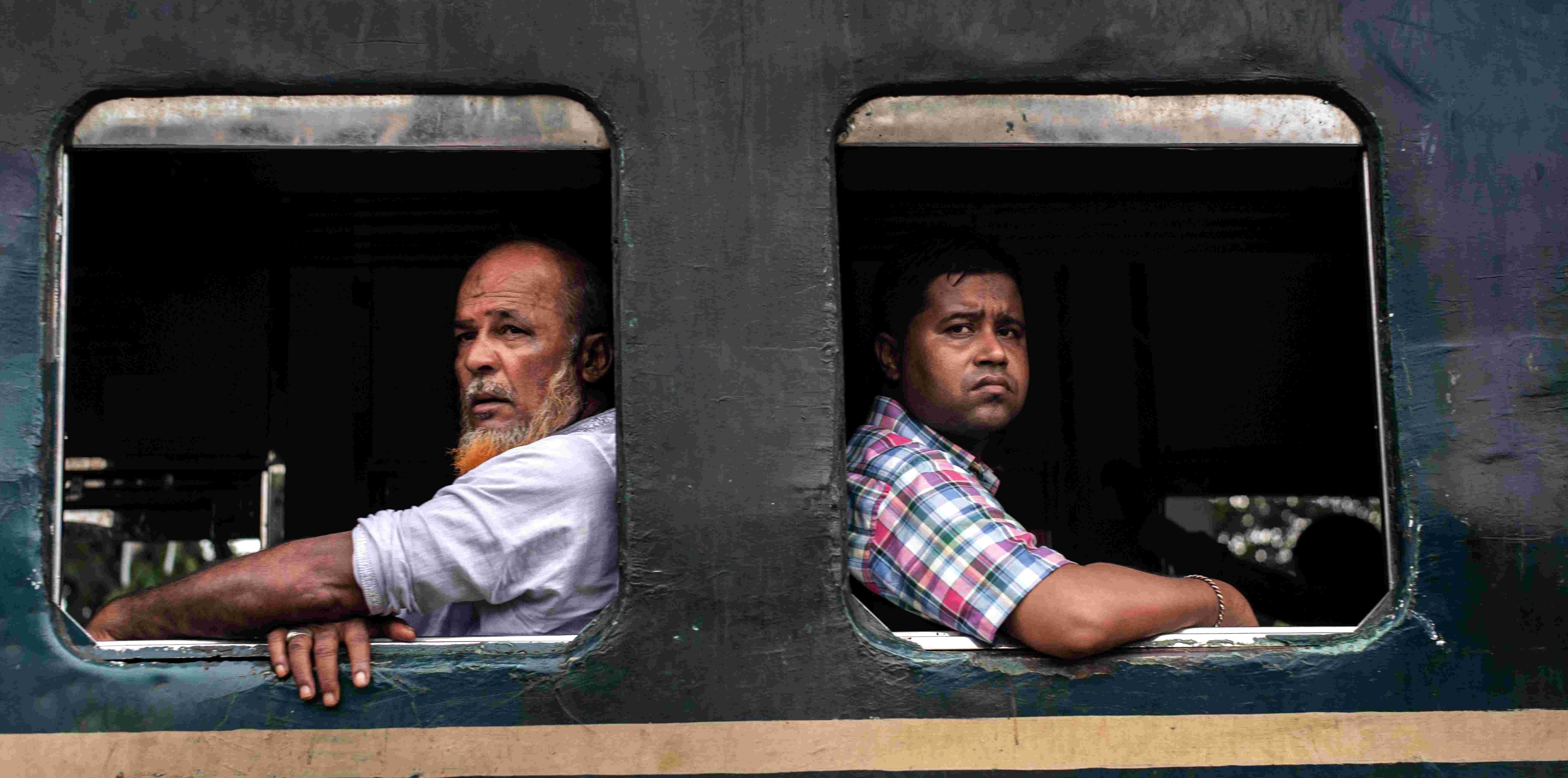 孟加拉火车站可以随意进出,并不要验证身份,火车来来往往。孟加拉的火车分为三个等级,卧铺、硬座、站票,买不到车票或没钱买票的人们,就直接采取扒火车的方式乘车。火车进站停靠时,上车的人直接从窗户上翻进去,或爬上火车顶、或挂在火车门上。场面可谓壮观。