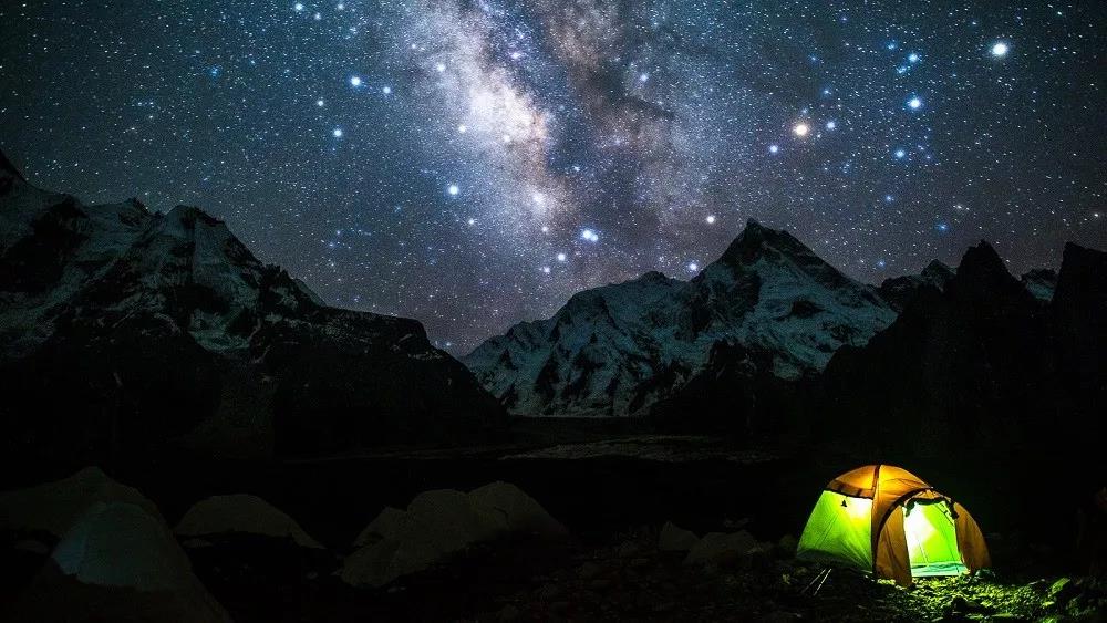 在山顶休憩,看夜幕下安纳普尔纳南峰。星星点点的天空异常耀眼,最宁静的时光就是此刻。