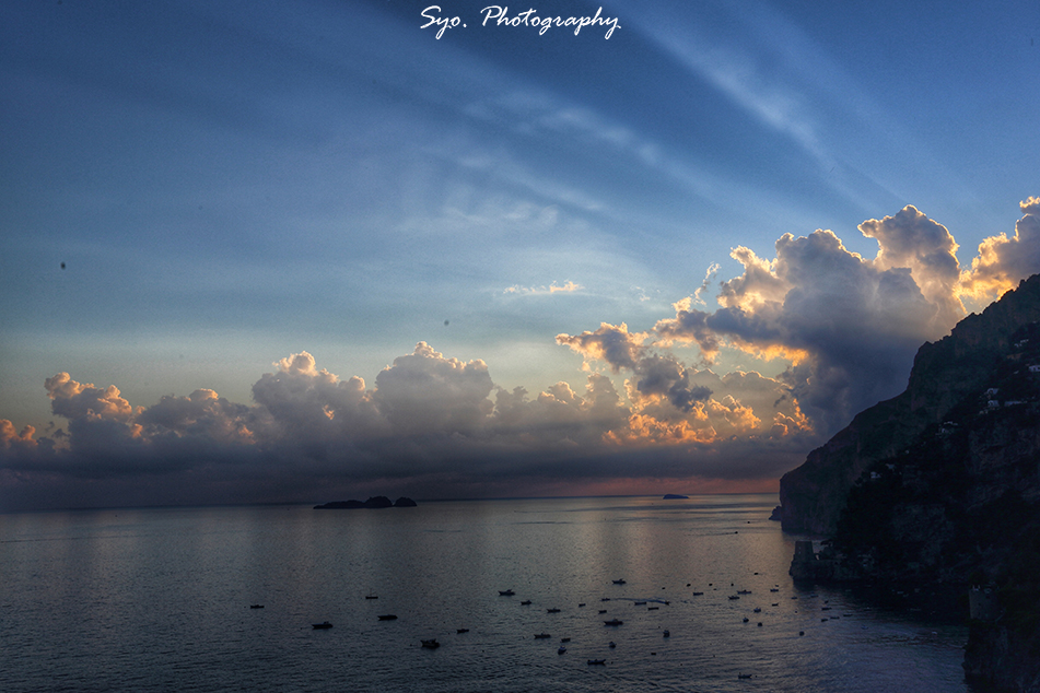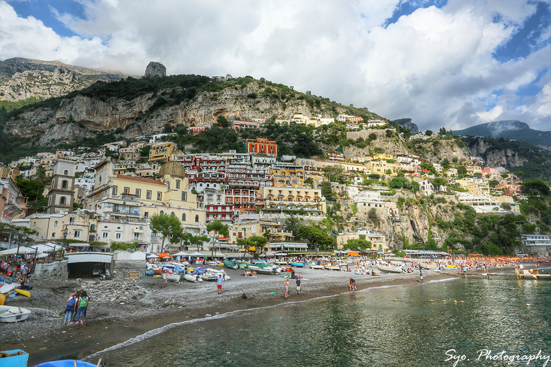 在岸边坐下聊聊天,时间很快就过去了。于是我们去找机位和餐厅,准备拍摄波西塔诺的黄昏。