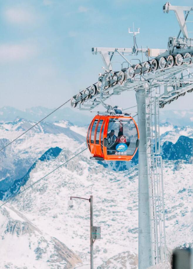 红色的缆车在纯净的雪山背景下缓缓而来,雪山群峰由远及近的雪山群峰,总是数不过来。只有蓝天和冰雪,连心跳都可以听的真切。