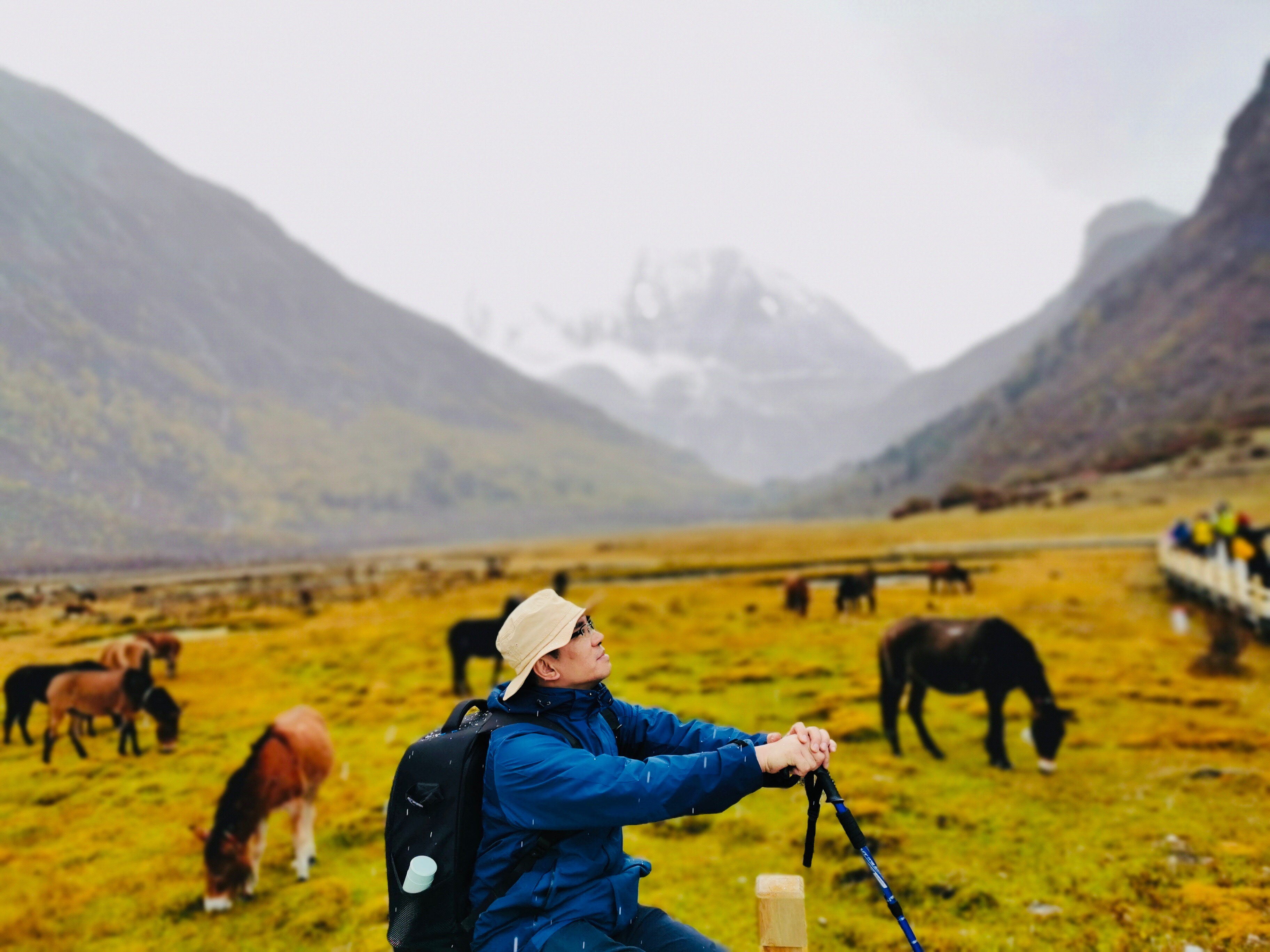 乘车约两小时车程,来到亚丁景区门口,换乘景区交通车,当高耸的雪山出现在眼前时,我们便已经进入了【亚丁景区】