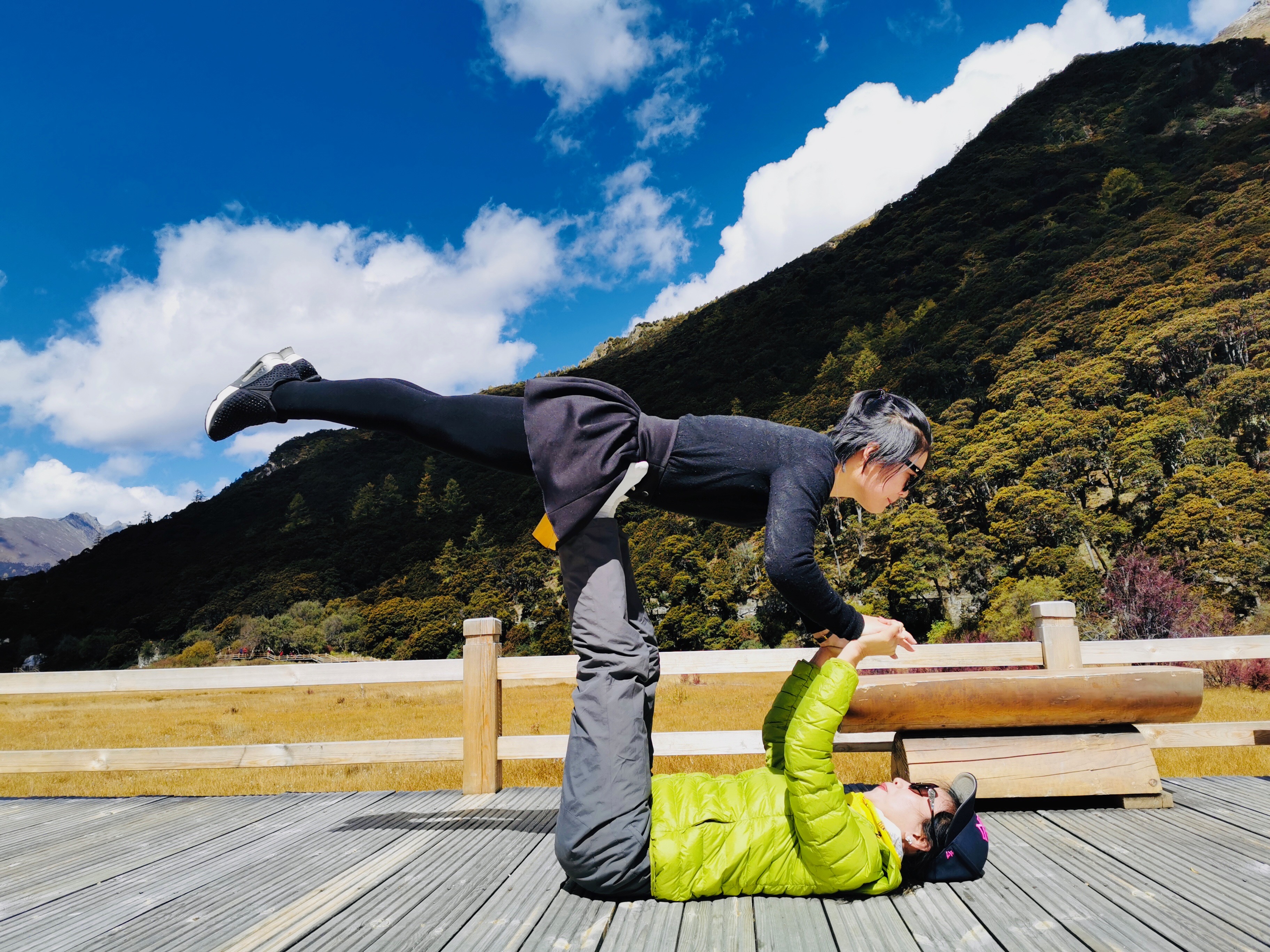 车停下休息的间隙,带领大家伙儿练练瑜伽,活动活动筋骨,缓解坐车的疲惫。。。。。。