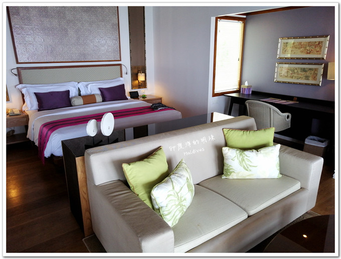 都喜的海洋屋,建在珊瑚礁的边缘,这里风浪挺大,按照酒店的安全提示,是不能下水浮潜的,所以我们没有订。