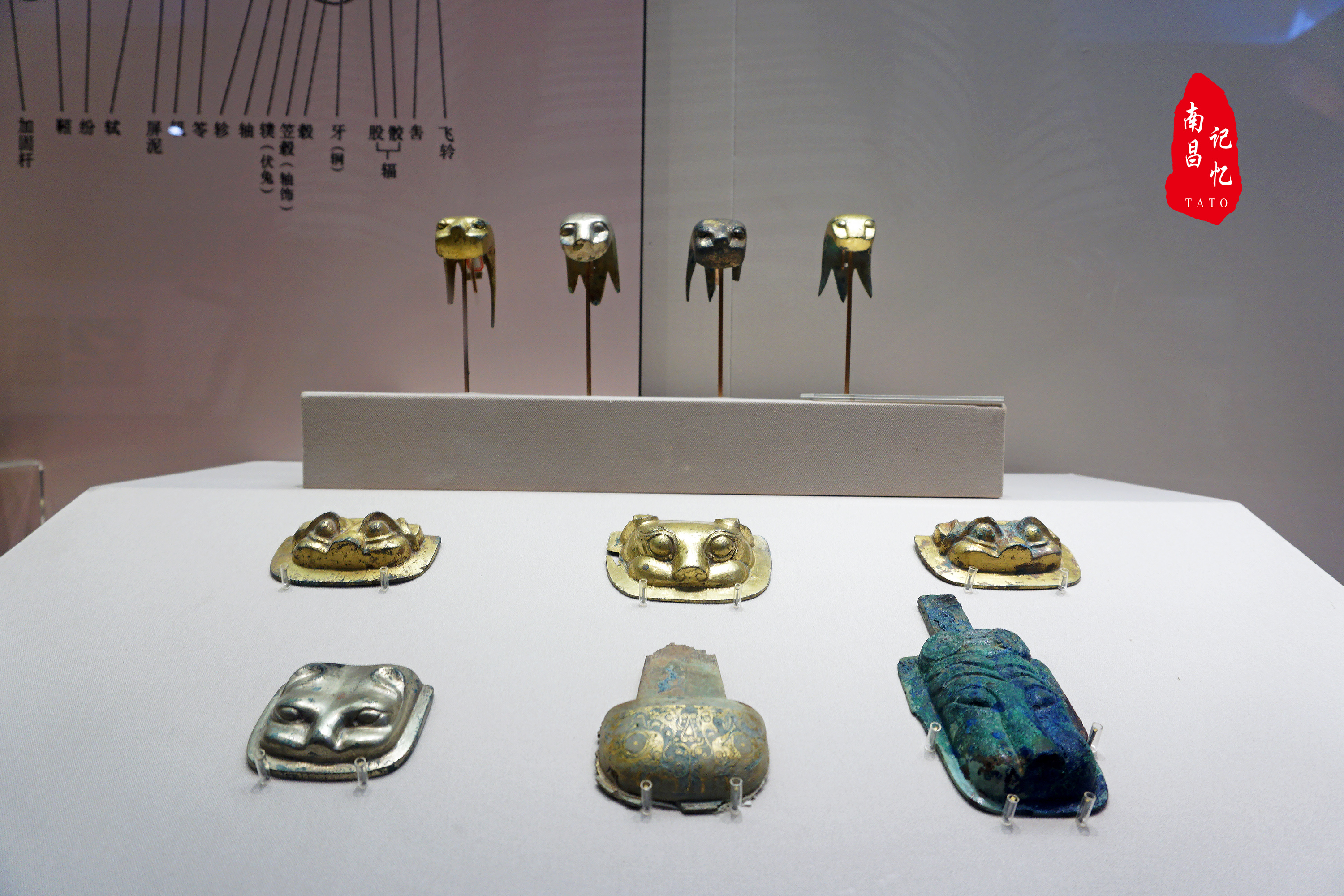 参观海昏侯考古成果展,印象最深刻的就是里面的金子,有很多很多的金子,金饼、金块、金条~连马蹄装饰都是包金、鎏金的,整个展馆都是金光闪闪的,看着真叫人羡慕,炫富,炫富,绝对是赤裸裸的炫富,不过在古代金子并不能真正的流通,更多的还是装饰,摆设。