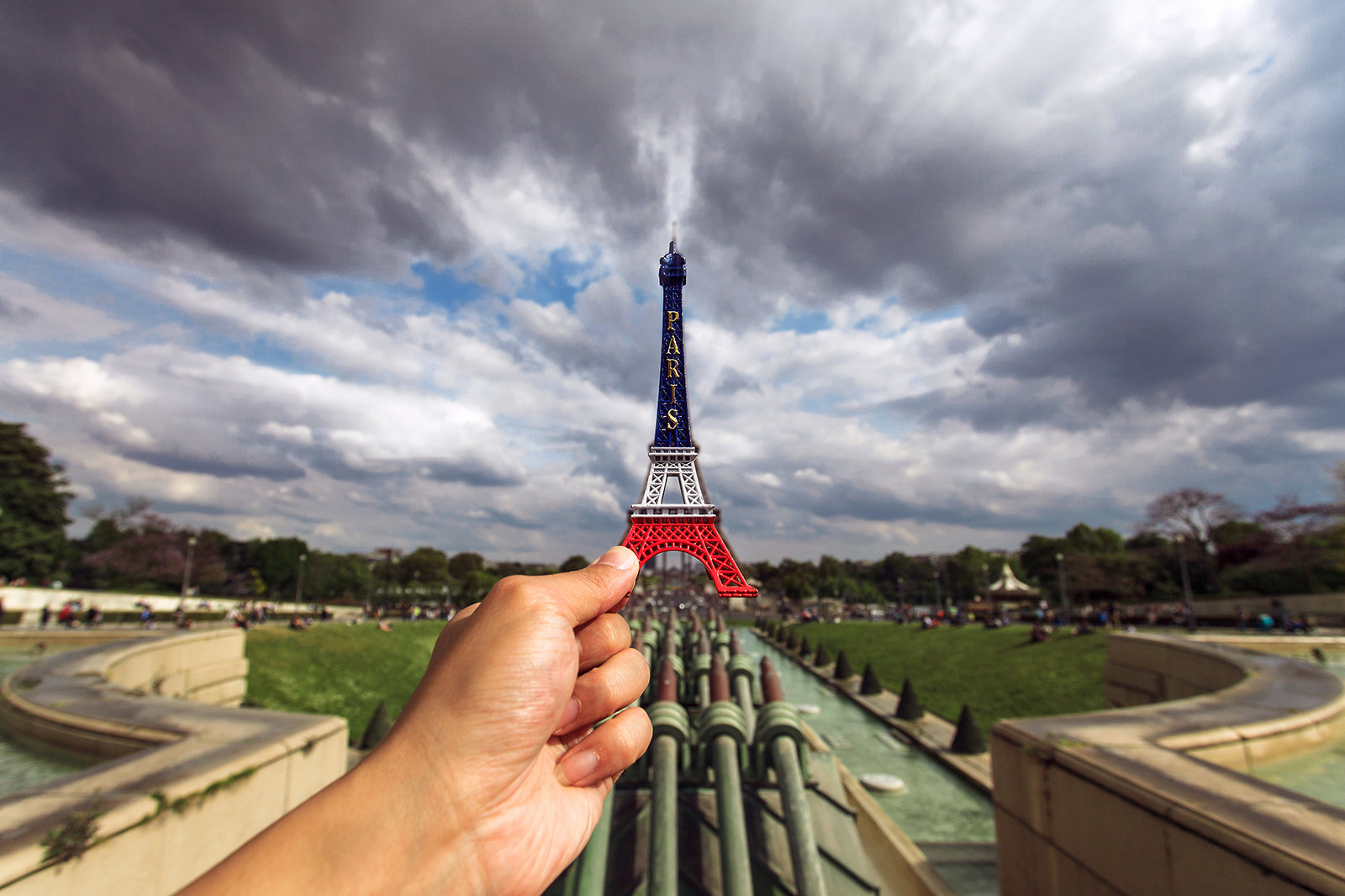 巴黎是一件精细的艺术品,它由不同的细节构成。任何一处不能完整地代表整体,而想要看到一个完整立体的巴黎,最好的去处是埃菲尔铁塔。我曾在暮色苍茫的时候登塔了望,眼前景色令人想起夏加尔的名画:《在巴黎的屋顶上》。在铁塔上能将巴黎一览眼中,惟独少了埃菲尔自身。有朋友告诉我,看埃菲尔最好的角度是在夏乐宫。于是某个晚上,我在夏乐宫附近看到了通体光亮浸透在巴黎夜色中的梦幻之塔。它仿佛黑色海洋中的灯火,指引人们继续探访浪漫之都。