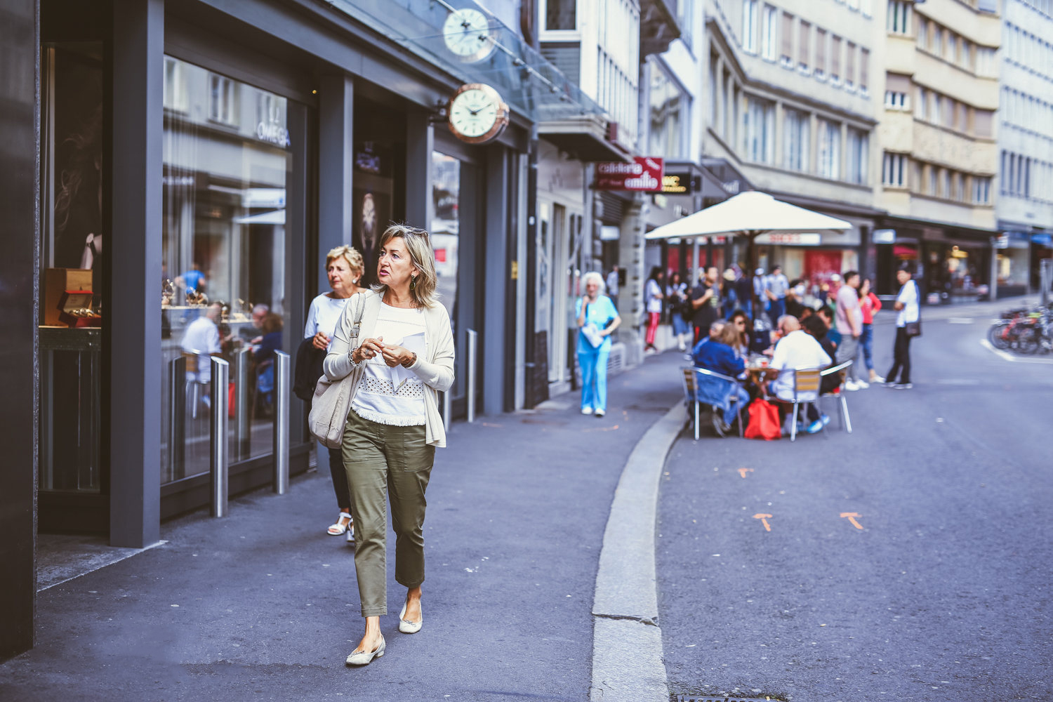 基本上一眼就能看到,因为花团锦簇的外墙很显眼,外面都坐满了人, 欧洲人很喜欢面对街景朝着阳光而坐,所以我们很幸运的进去就有空位子,之前无论在哪个欧洲国家,常常都是别的顾客都坐外面就我们选择坐里面。