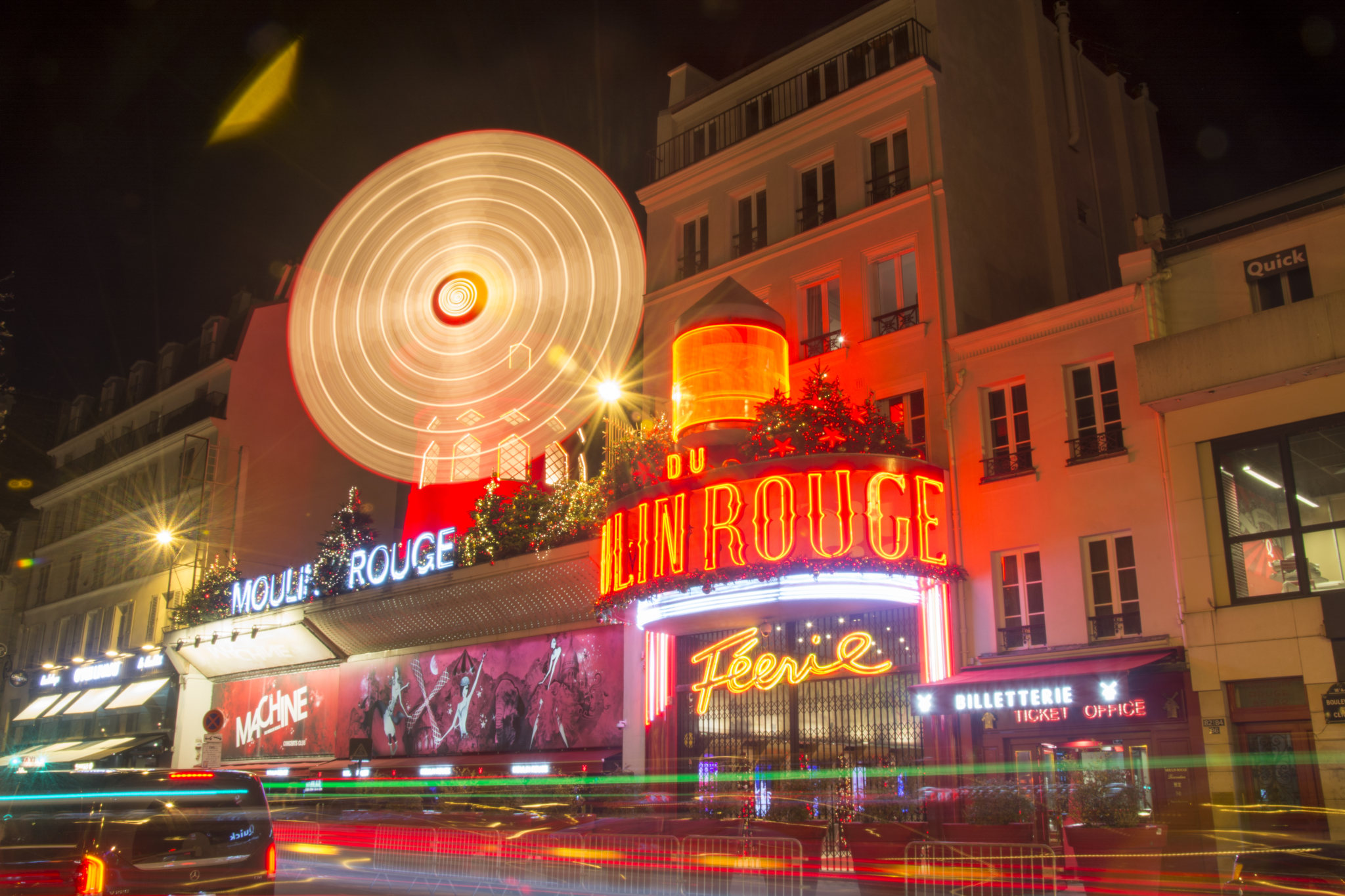 每当夜色渐浓,一些当红艺术家就会出现在这条街上。他们呼朋唤友把酒言欢,如果兴致高了还会走进红磨房。在蒙马特的夜晚,圣心教堂传出肃穆的管风琴声。它与红磨房的歌舞升平交相辉映。十九世纪以来,蒙马特高地上最令人注目的一直是红磨房风车上的叶片。这家可以容纳千人的夜总会创造了著名的“康康舞”。尽管圣心教堂附近就是红灯区,但红磨房与其还是有本质区别的。相比周围的景物,它更象一个堡垒,左边是艺术右边是堕落,中间则是笙歌艳舞。蒙马特在充满昭示的分界之间,显得高深莫测。它以现世的形式再现了艺术与其来源的关系,因此它不仅拥有高于巴黎的地理位置,也拥有至上的艺术地位。