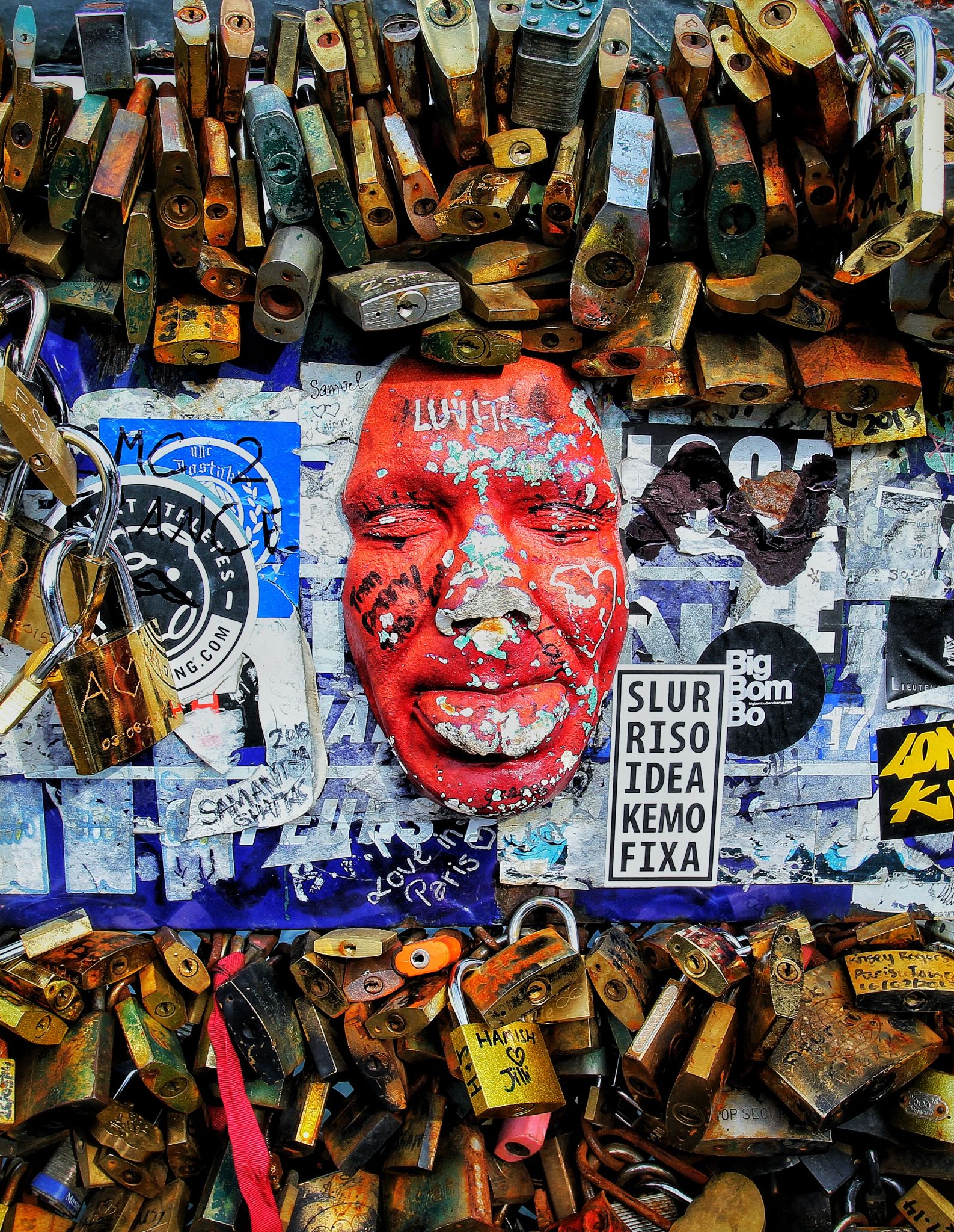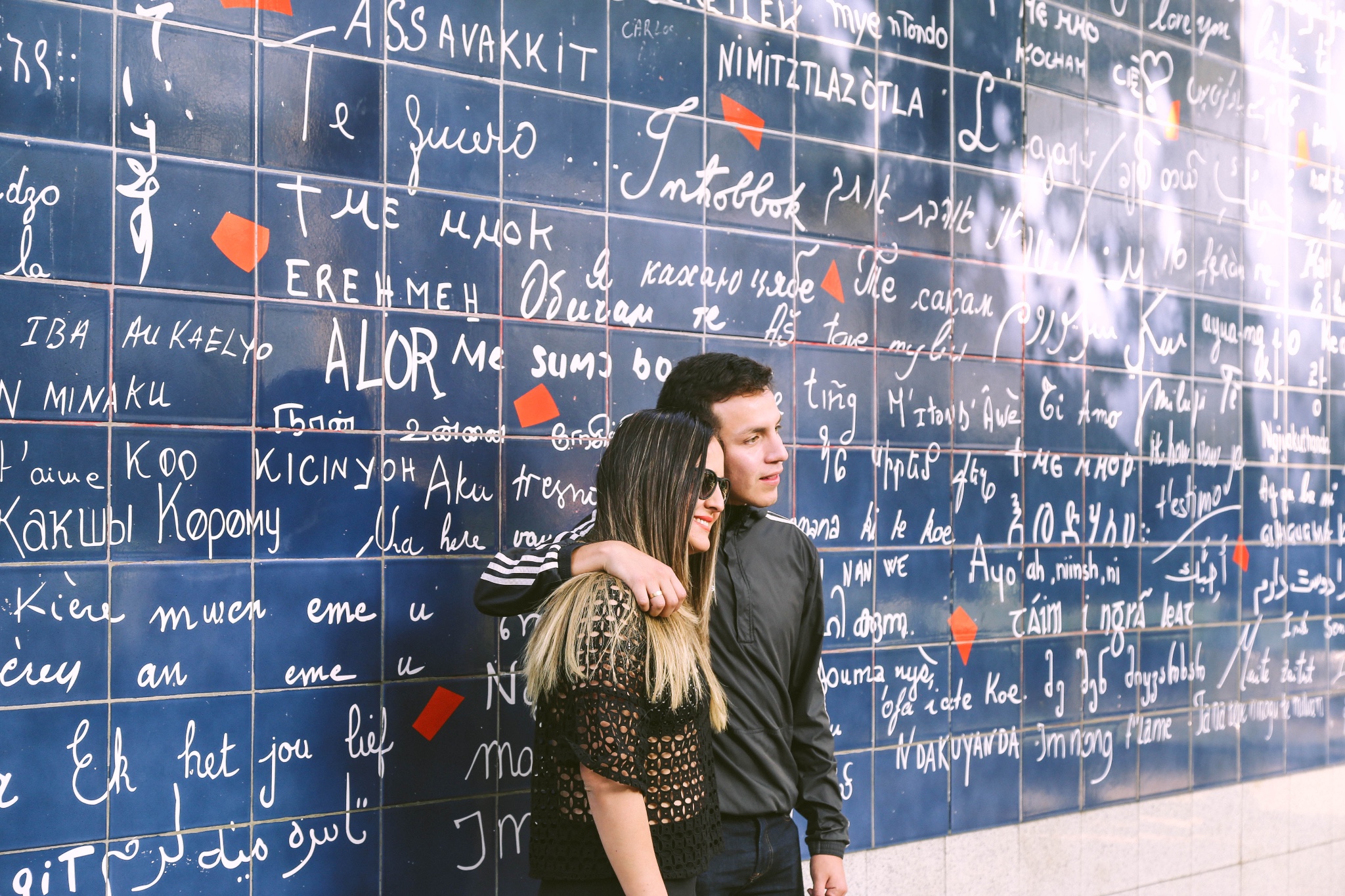 第一次穿过LES ABESSES广场找到它,花园深处黑蓝色的墙壁上写满了“我爱你”,其中包括511片蓝色瓷砖、311种字体和280种语言。当中这些红色的碎片瓷砖据说是一颗颗破碎的心,设计者希望用爱来重组这些受伤的心灵。墙壁左侧可以找到三个竖排的中文。不知是谁创造了浪漫之墙,也不知是谁用自己的语言书写着最甜蜜的三个字。但从不同的字体和书写笔迹中可以看出:有的人是甜蜜的,有的人是痛苦的,有的人是充满希望的,有的人则是借此缅怀。也许这面墙本身没有多特别,但是这面墙在巴黎而让巴黎更特别。
