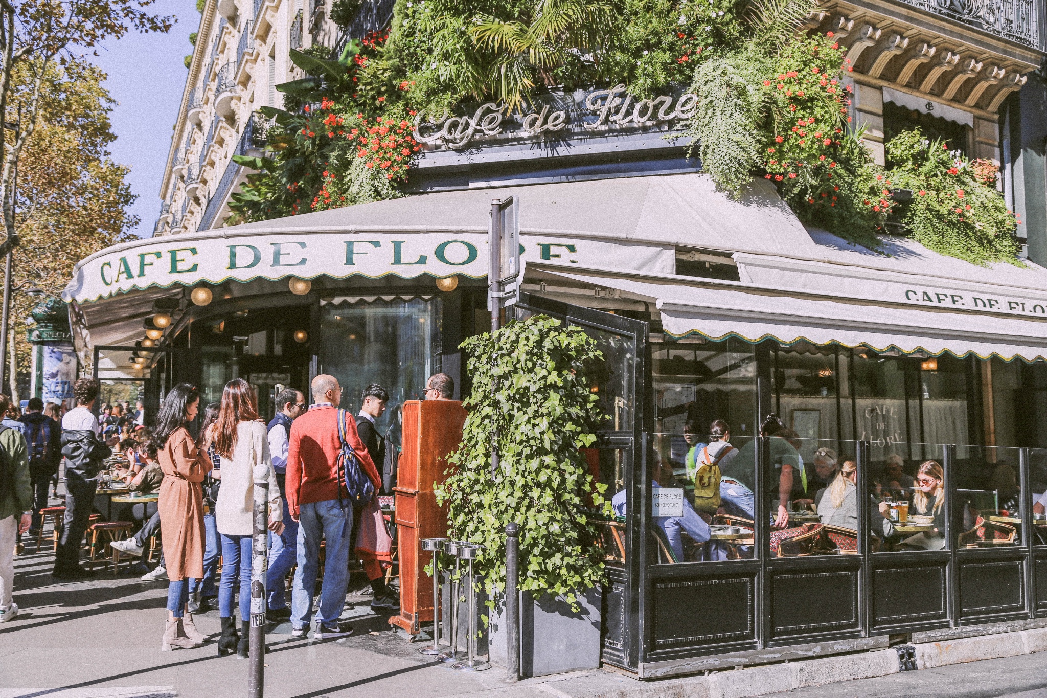 地方很好找,因为真的太有名,地处 巴黎 第六区圣日耳曼大道和圣伯努瓦街的转角处,以古罗马女神flore而得名。