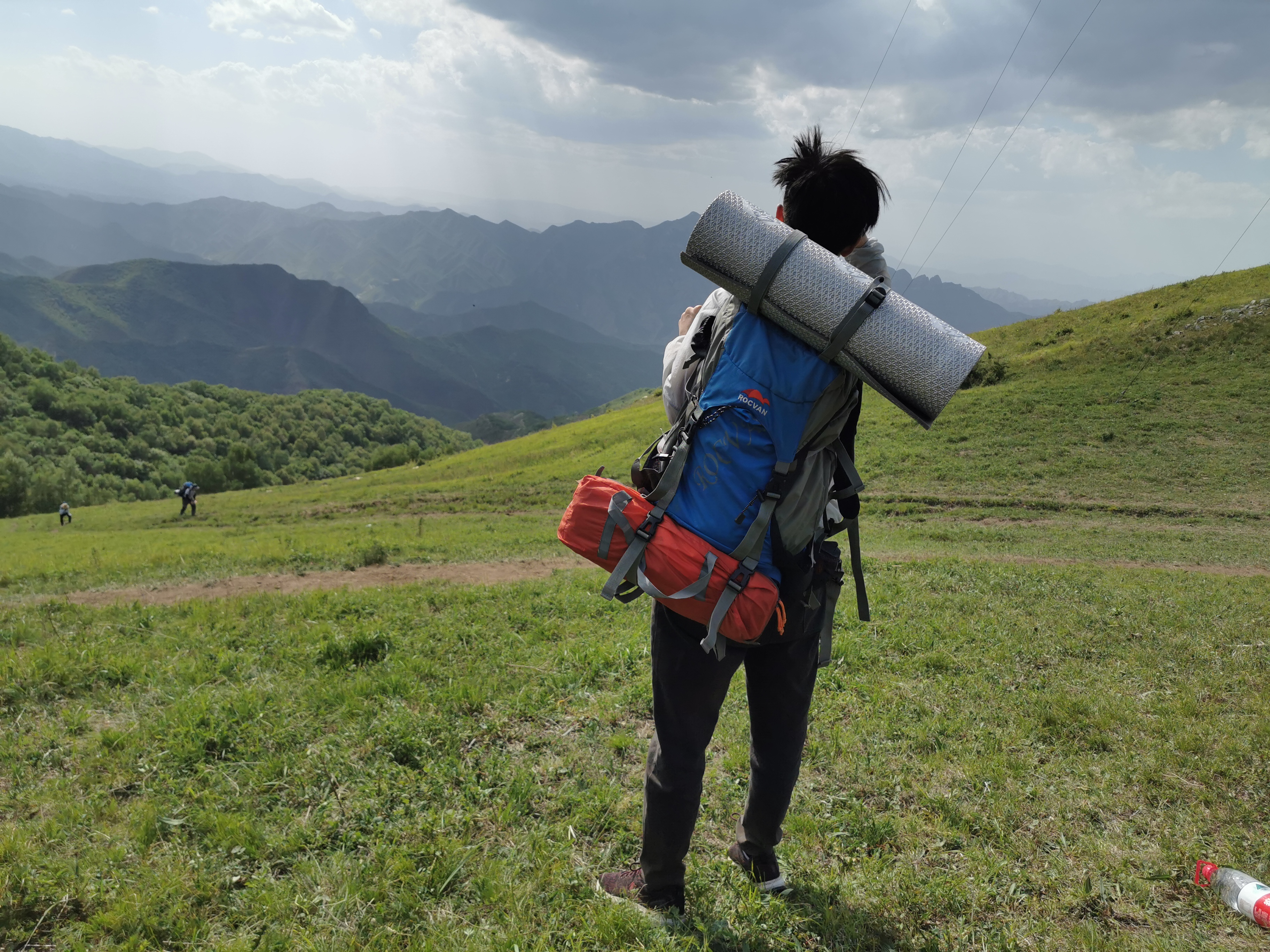 摘完韭菜,接到队伍返回的通知,立马收拾行李,向山下进发!(感谢荧火帮我收拾行李及帐篷哦!中国好室友!)