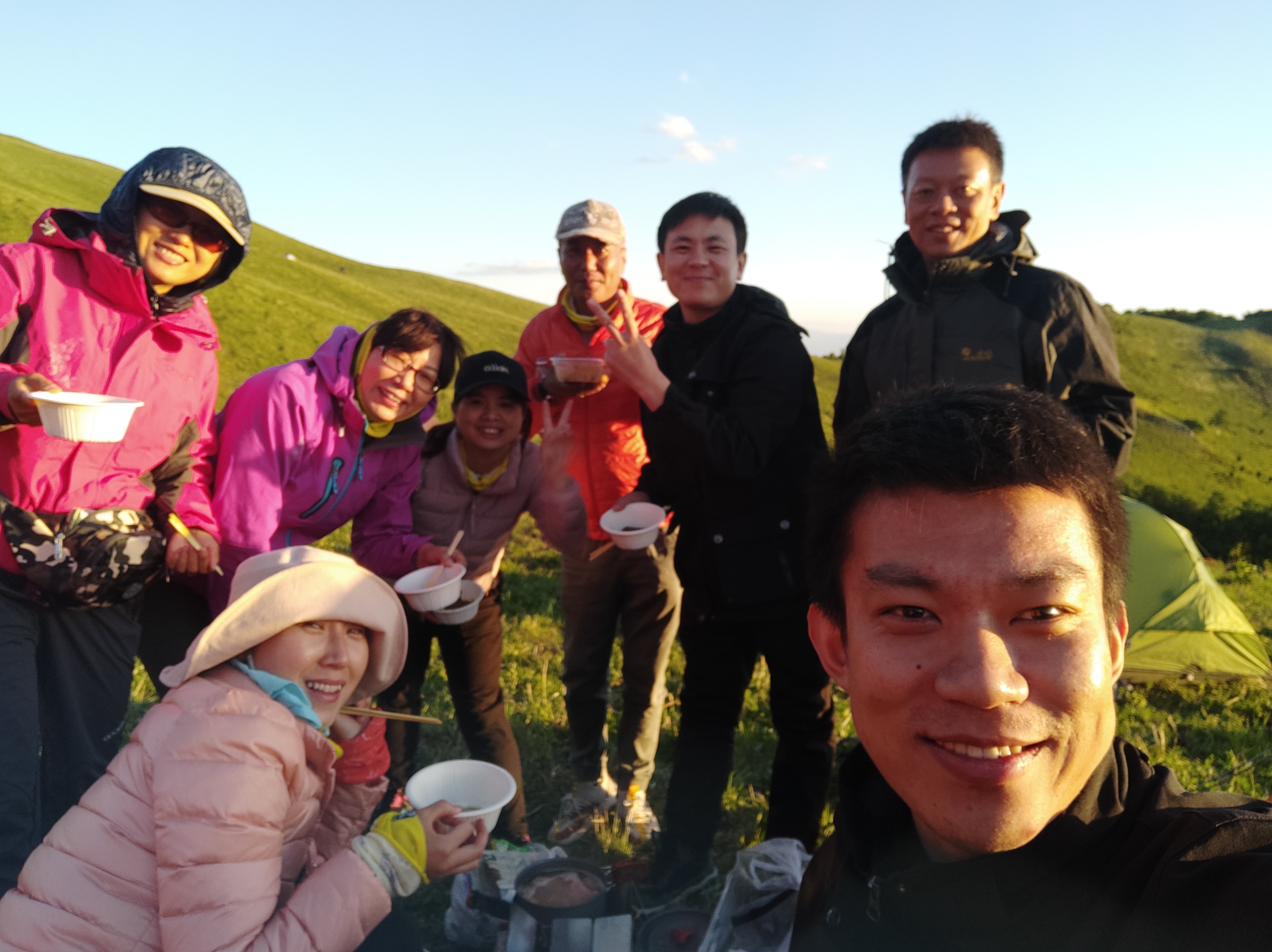对于山的向往一向多余海,海边,夕阳也许是人生幕年的享乐。趁青春尚好何不背上行囊攀上向往的山峦。登山的路艰辛漫长,有着小伙伴们的鼓励,还有赵姐,小艾,小勇给我打气。我从队伍的后边走到了中间。看到小伙伴背这两个半球的西瓜,我会心的笑了,冲他竖起大拇指。未来有一天我也会成为一名领队。那时我会为全对背上这样的半球,一想到那个时刻心中充满期待。爱与分享,使越来越多的人爱上了户外,并乐此不疲。