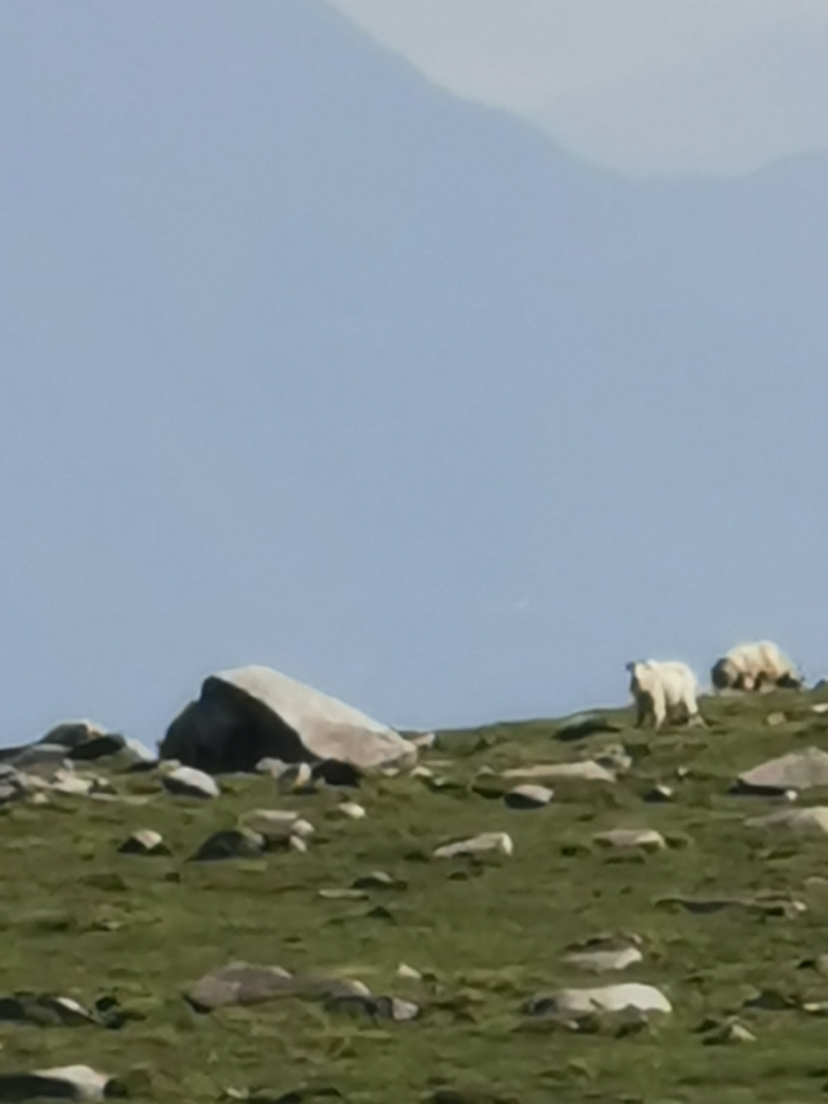 刚开始上南天门不久,雪碧就小声告诉我们,都不要讲话,这里有羚牛,于是这一路大家都默默低头走路,大概爬到三分之二,明空眼神真好,就说那边有羚牛,我们马上掏出手机,各种拍,熊二的手机真的好,不仅在这么电量匮乏的长途跋涉中能时不时给我们放几首歌听听,还能拍到超级清晰的羚牛群视频和图片。因为太远,我根本看不清,之后是看视频和图片才知道羚牛竟然这么胖,秦岭真是块宝地,把这些动物都养的肥肥的,每天可以惬意地吃着青草、欣赏着这里的无限风光。