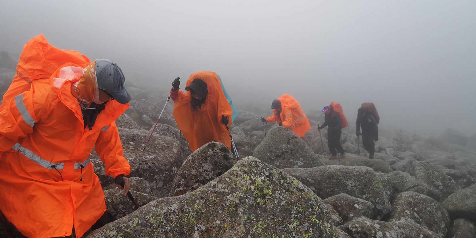 万仙阵在我想走鳌太开始看帖子的时候,就常常看到这个名字,17年遇难的几个云南人都是在这附近失温的,还有很多是因为走到这边大雾迷路的,前一天走完九层石海,我想着后面应该没有比这更难的了吧,因为听说后面的爬升都不多了,很快也可以走到景点,也就安全了,真正到了,领略到了万仙阵的大雾大风大雨才算是真正理解了鳌太最难的不是在晴天爬石浪,而是面对恶劣天气,你要如何选择,是继续走,还是停下来修整再出发。17年出事的那几个,应该都是觉得快到景区、快安全了,就在大风雪下继续前进,有一个连帐篷没有打开就倒在的帐篷边上,还有的倒下的时候离包包很远,我们没有办法想象他们在失温之前有过怎样的心理活动,还是他们已经没有心思再想其他的,只想赶紧走出去。我们只知道,如果老天爷不让你走,你还是原地待命吧。