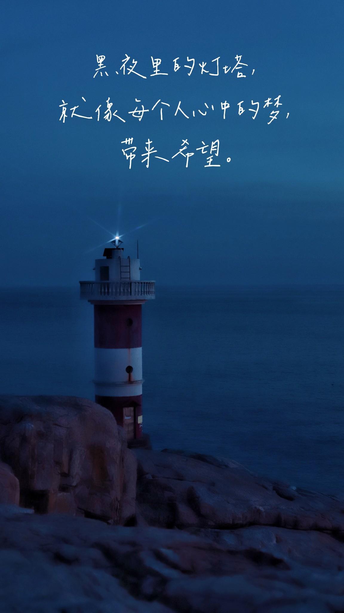 夜幕降临, 灯塔闪耀,我让路人帮忙拍下了这张照片。