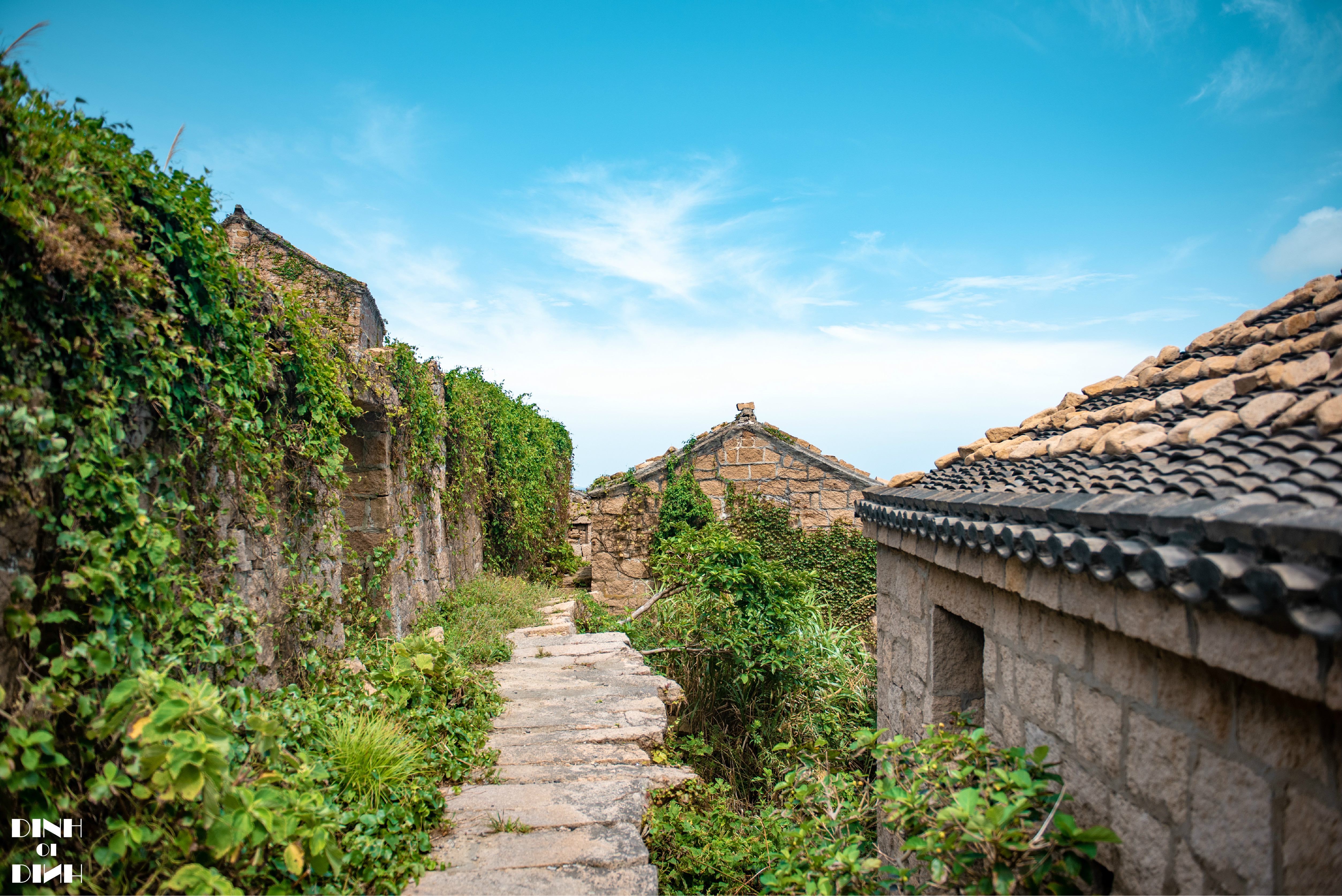 很多房子已经被苔藓爬满了,但是气候不是特别湿润,不像网上另外的那个无人村。