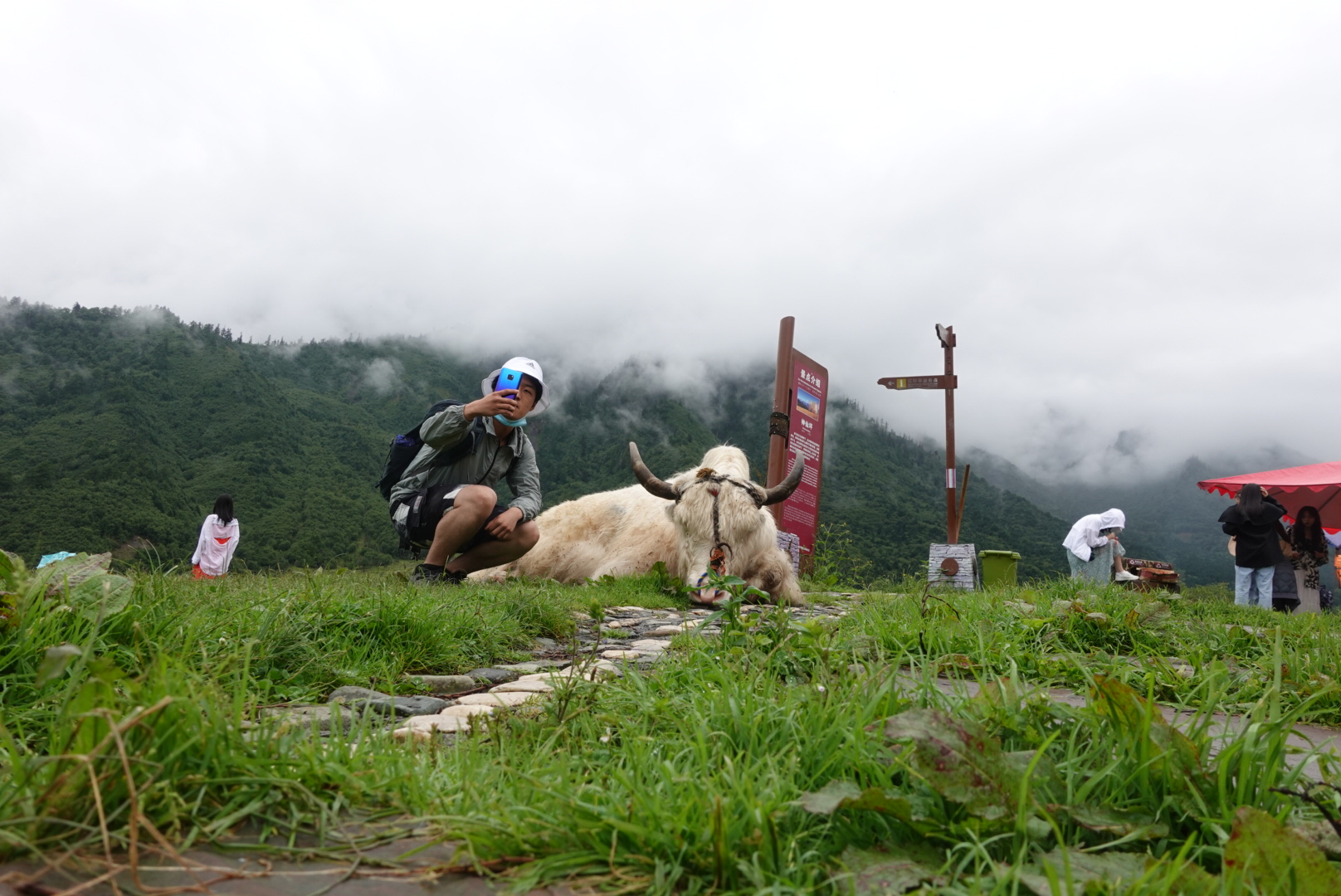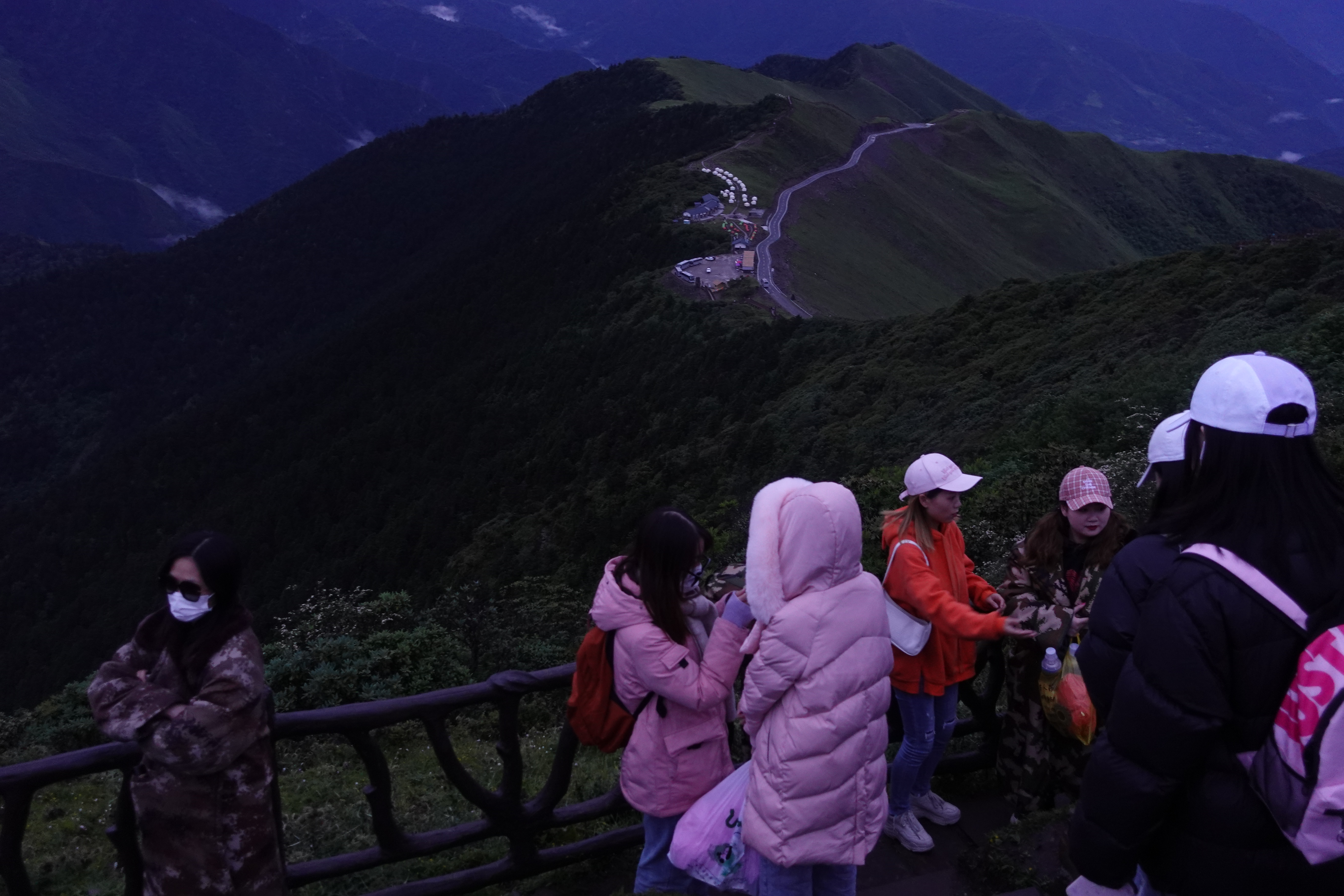 这次来只看到了四姑娘的幺妹峰,其它的山峰由于云层太厚被挡住,也没有看到日出,云海是在我们的头上……