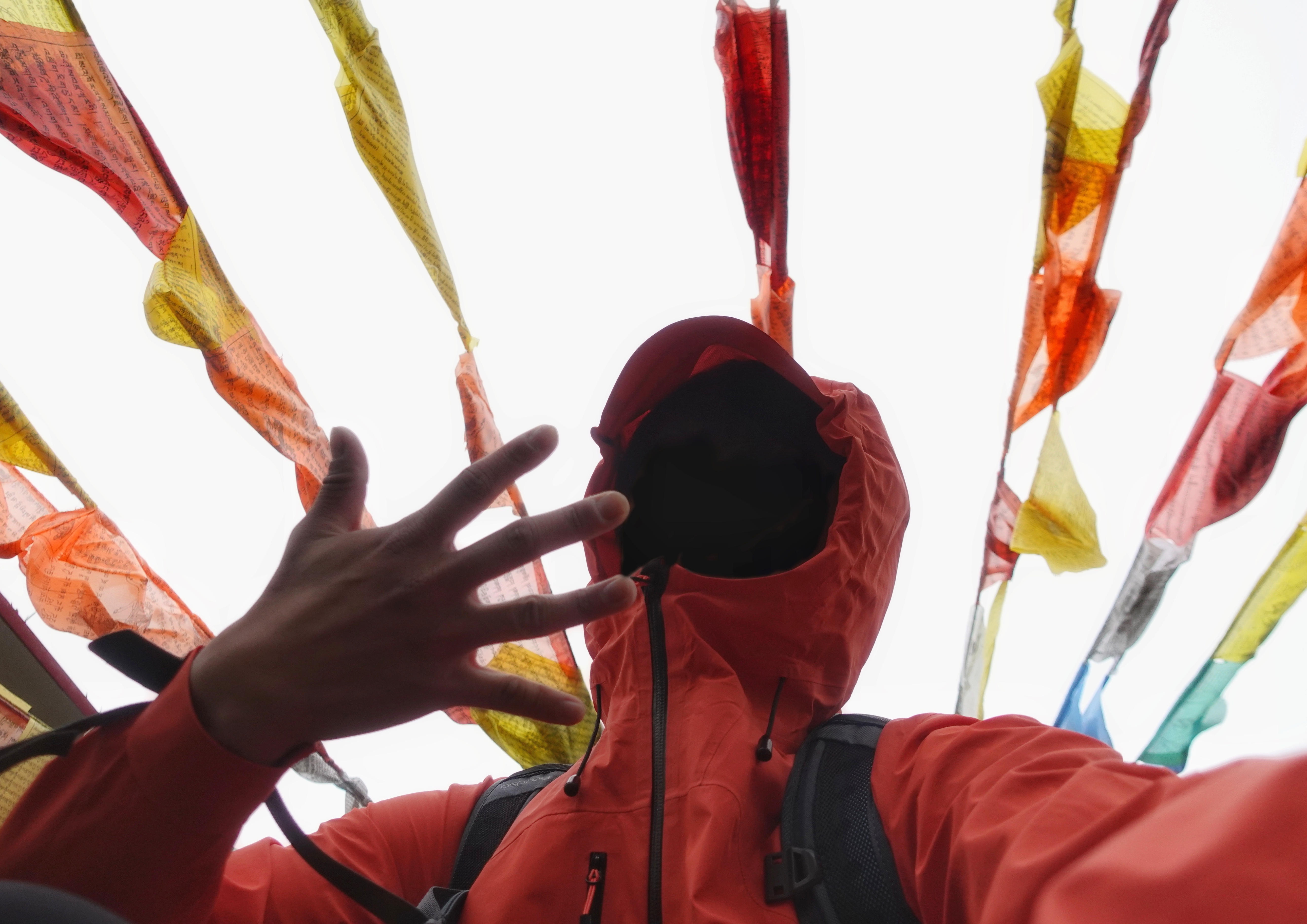 沿步道上行,一处很大的经幡,打了手电筒后的颜色很亮眼。