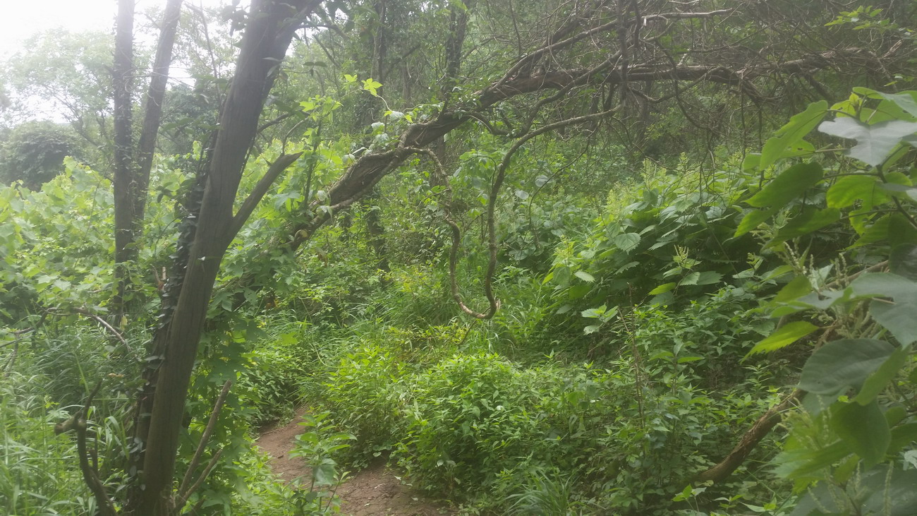 过龙洞山后先下行至山腰,之后再上行至大刺山,山路两边植物生长非常茂密,很多藤径植物紧密地缠绕在树干上,仿佛永远难以分离,给人以一种十分原始感觉。