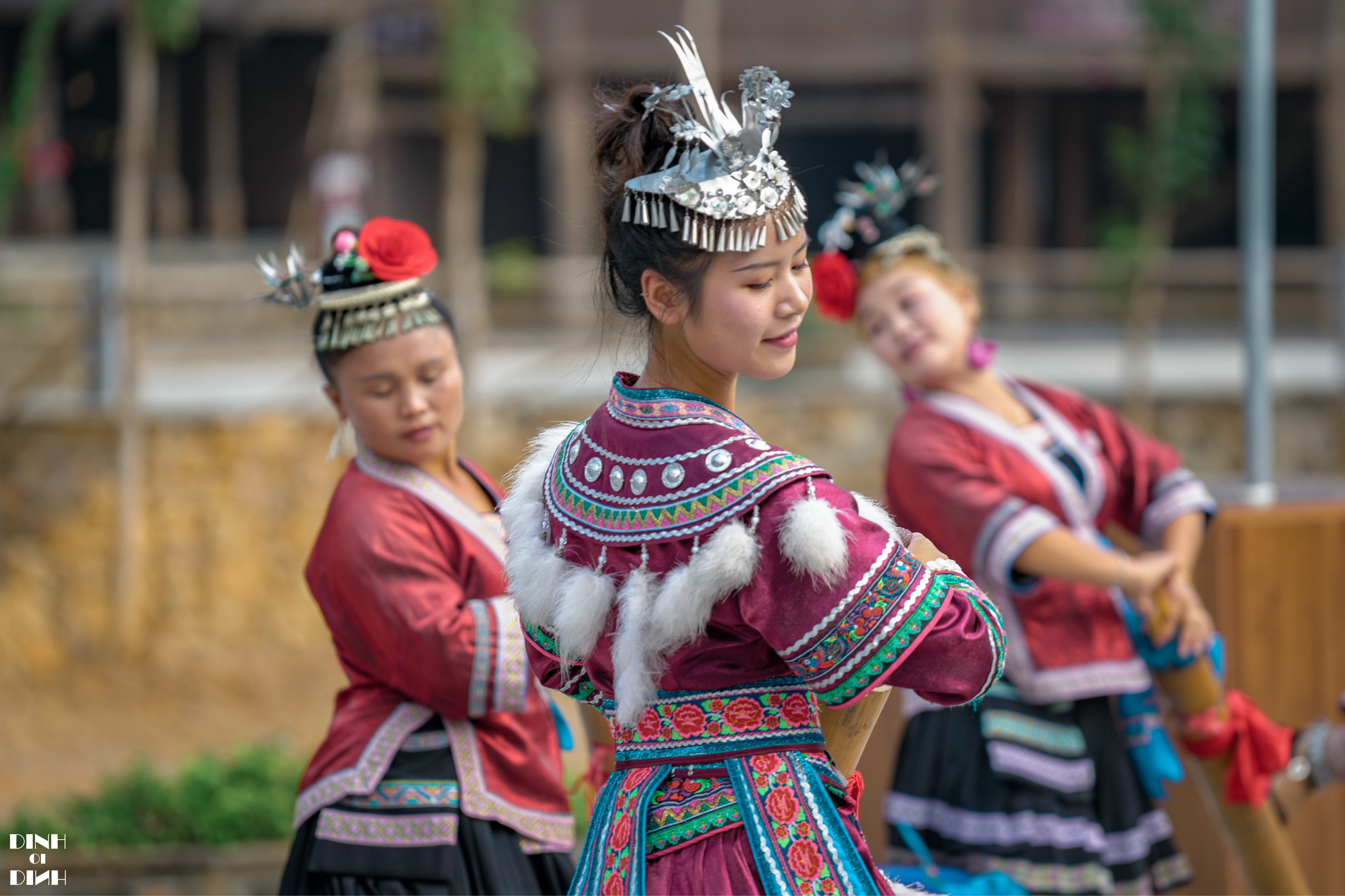 下午2点,随着芦笙的吹起,演出准时开始,因为是竹子制作的乐器,芦笙的声音很大,也十分清亮,不需要扩音器在边上都能听得很清楚。苗族阿妹们随着音乐跳起了踩堂舞。