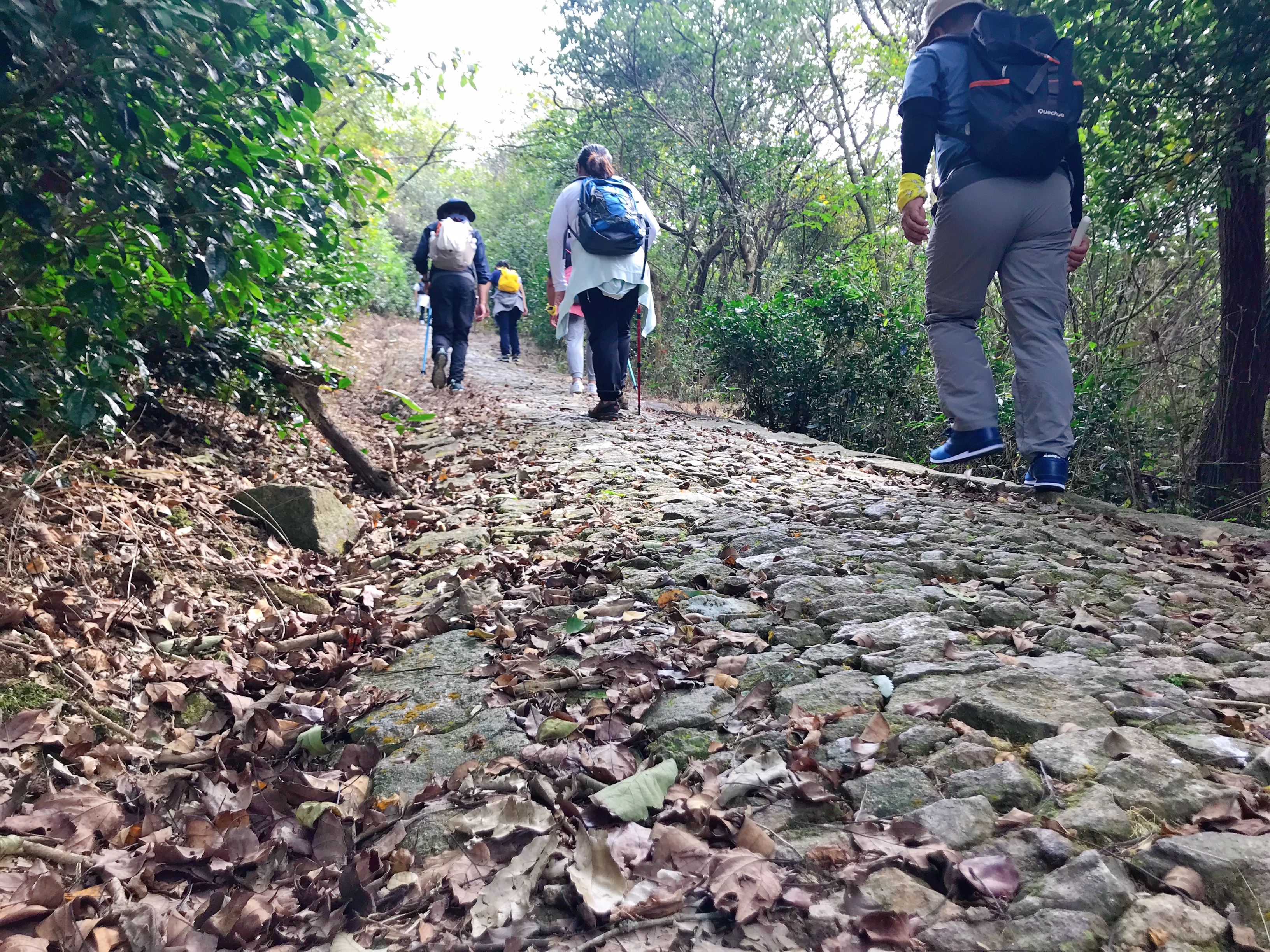 从洋山村出发,一路都还比较好走,但紧随其后的是一段60°的陡坡,虽然旁边有台阶路可以走,但大部分小伙伴还是选择挑战自己,迎着大坡一路冲顶。