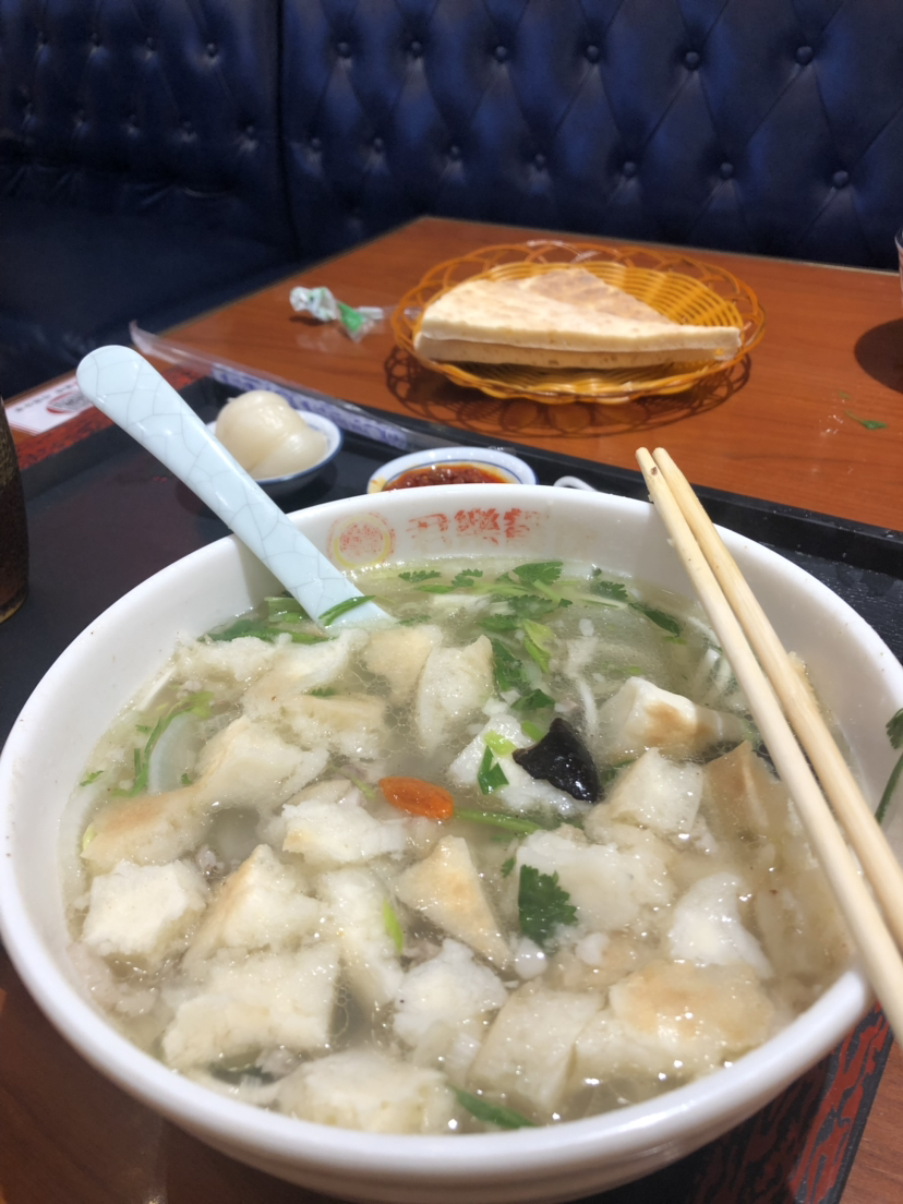 羊肉泡馍很大一碗 看起来是清汤的 南方的小伙伴表示真的好咸 感觉还是西安的好吃一些