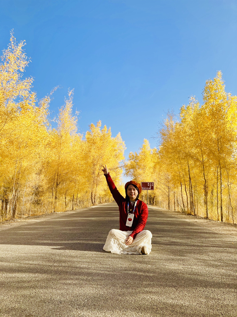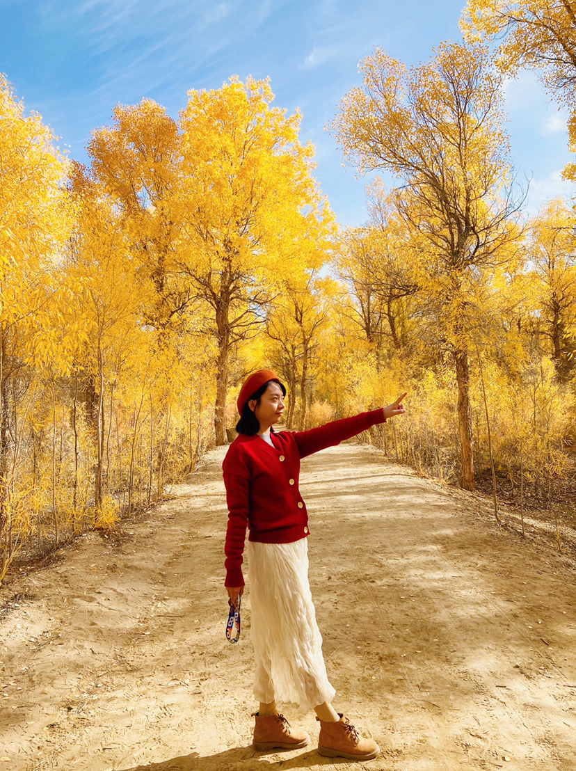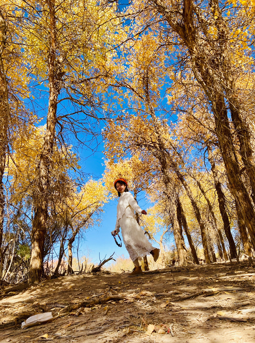 其实 额济纳旗具体在哪她并不清楚 只是想赴一场胡杨之约 在哪又有什么关系 一个月后便跨越3000多公里 置身胡杨林中 连胡杨门票都凑成了520