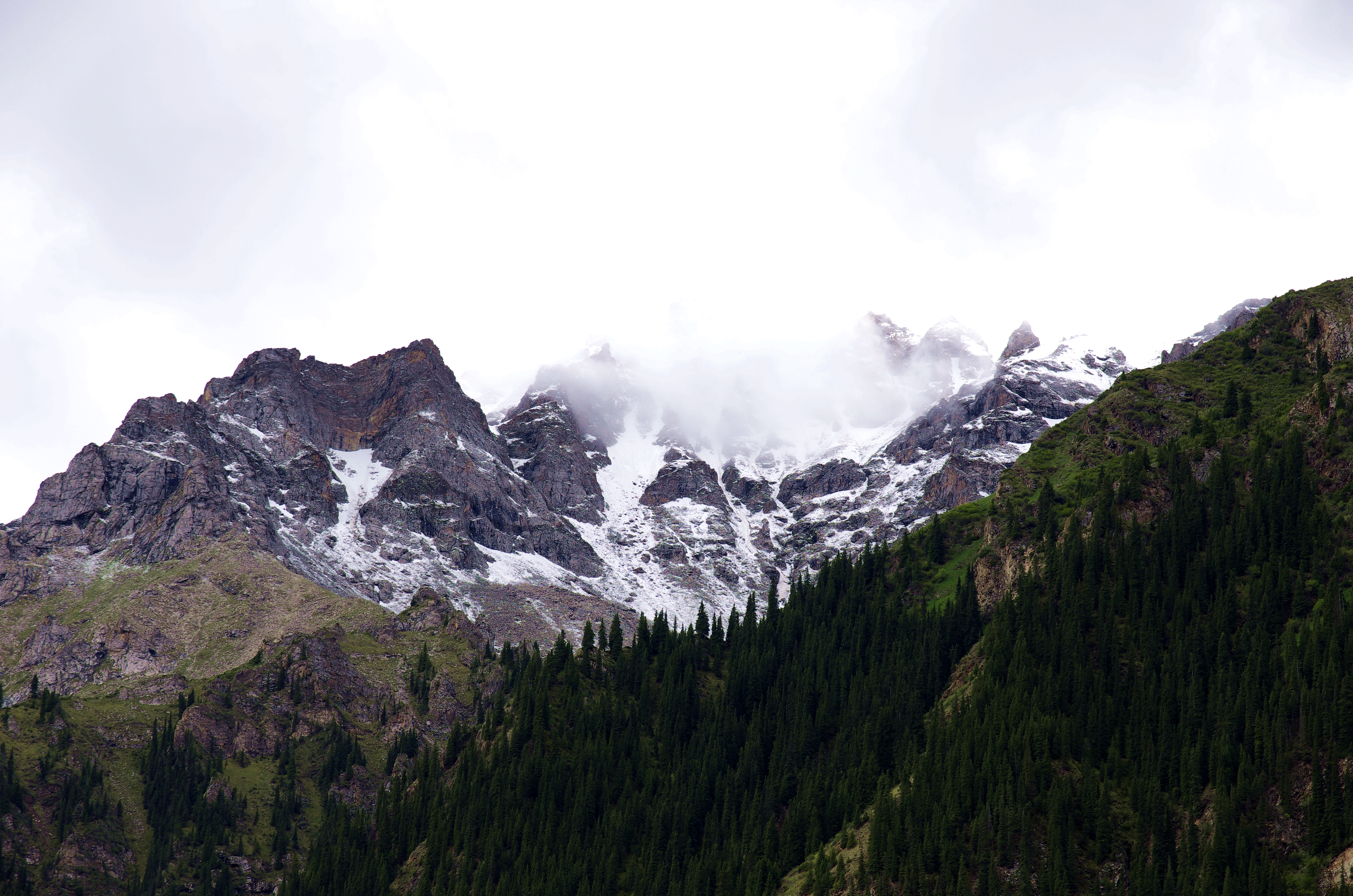 早上八点,客运站的司机打电话,我们拿着我早餐、边吃边走,司机看到我们连忙招呼我们上车,车上已经坐了两个游客,一辆小车坐四个人,一人20元。路上经过许多烟绿的草原、宁静的河流,昨天刚下过雨,雾气蒸腾,熬是好看, 昭苏 至夏塔70km、一个小时左右就到了。夏塔景区门口的山上,云雾缭绕犹如仙境。