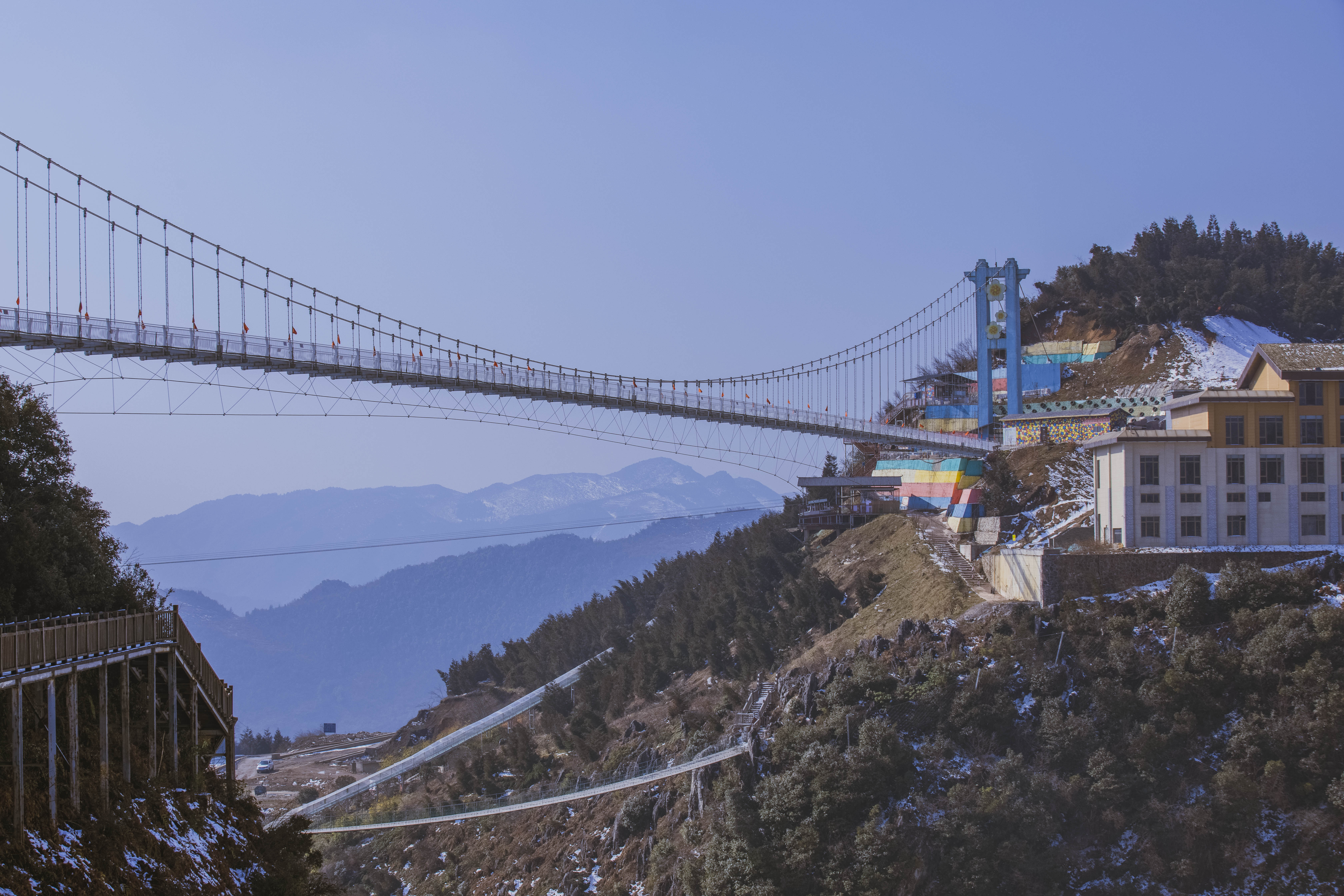 梅花山玻璃吊桥为玻璃鹊桥,寓意走进梅花山,情侣便可像牛郎织女一样在空中相会。它横跨在梅花山景区内险峻的两山之间,悬空于滑雪场之上。