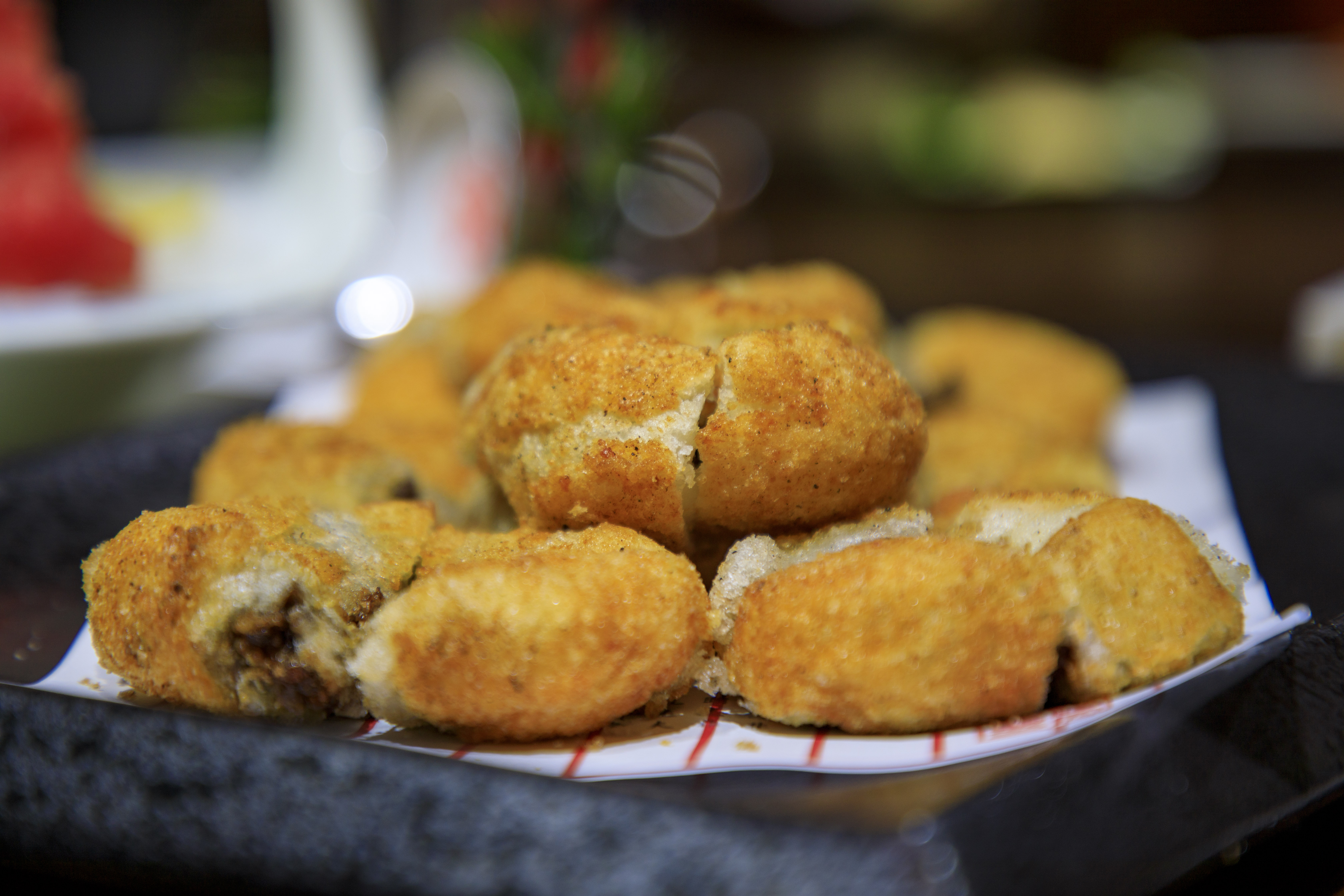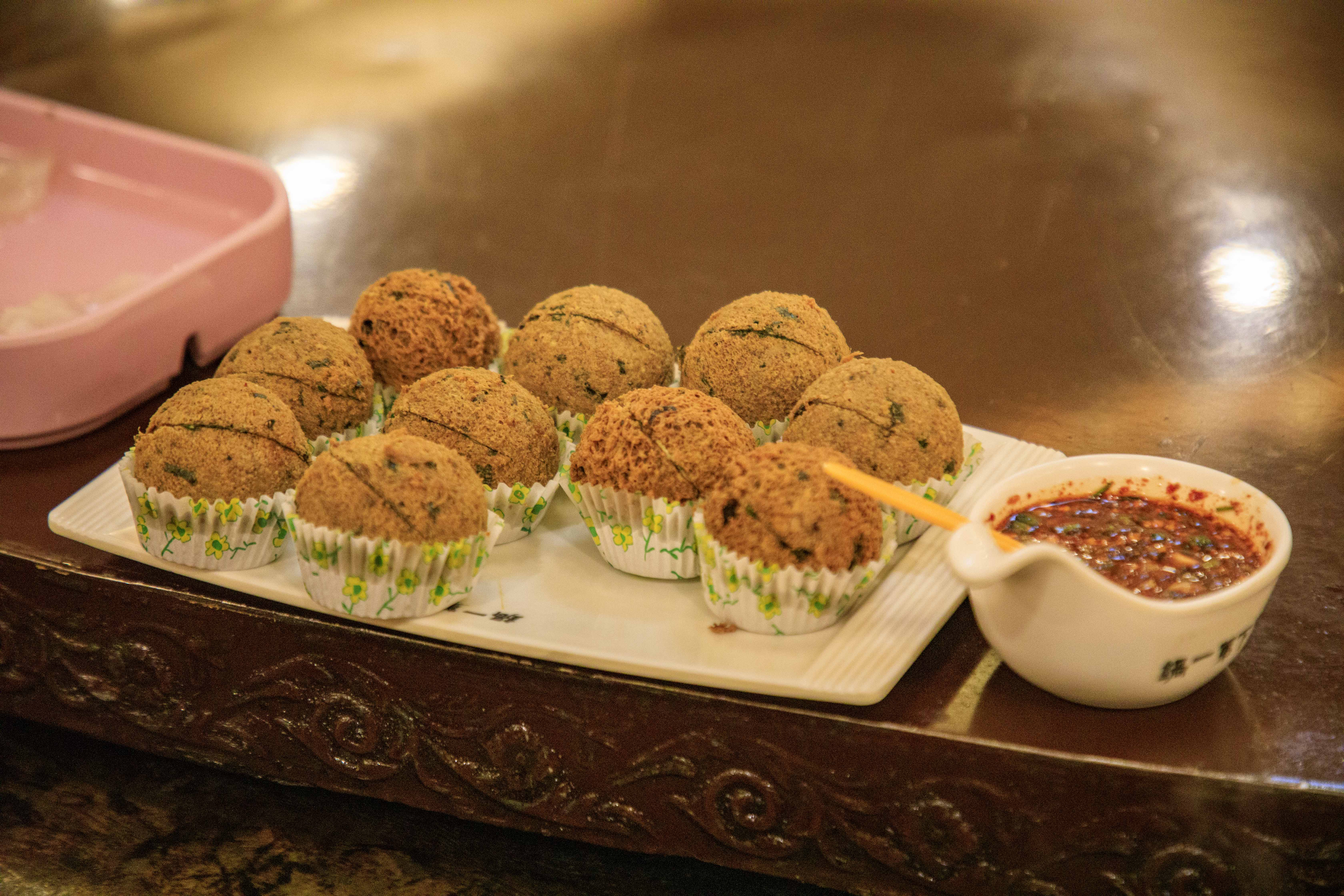 豆腐圆子有着近似黄金的松脆外皮包裹,内里是包裹着软滑的豆腐馅料,它的做法让人惊异,吃的时候可以撕去外皮,如鸡蛋般大小的豆腐圆子,油炸后外脆里嫩,配上特制的酱料爽脆嫩滑,味道鲜醇。
