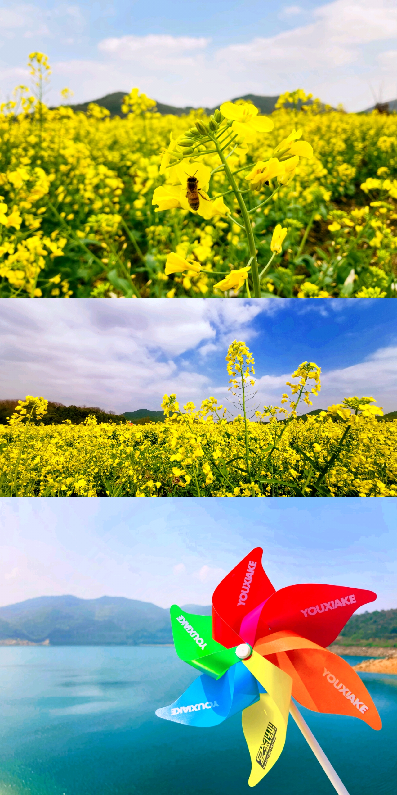下山贴近油菜花田,可以近距离的打卡,没有围栏,大片大片的油菜花田可以满足拍摄需求,尤其是阿姨美女们~不过还是建议穿白色裙子会更配…毕竟明黄的油菜花搭配不好就很土…
