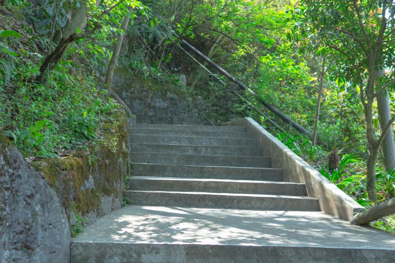 在选择乘坐高空滑道还是步行的时候犹豫了很久,我不愿错过路上的风景就选择了步行,朋友去坐了滑道;不过路上确实也没让我失望,温暖的阳光透过郁郁葱葱的树木洒在路上,路旁不知名的鲜花也在努力的展示着它们的美丽,就像是穿梭在宫崎骏动漫里一样,走在了一个充满蓝天,充满碧草繁花的世界中