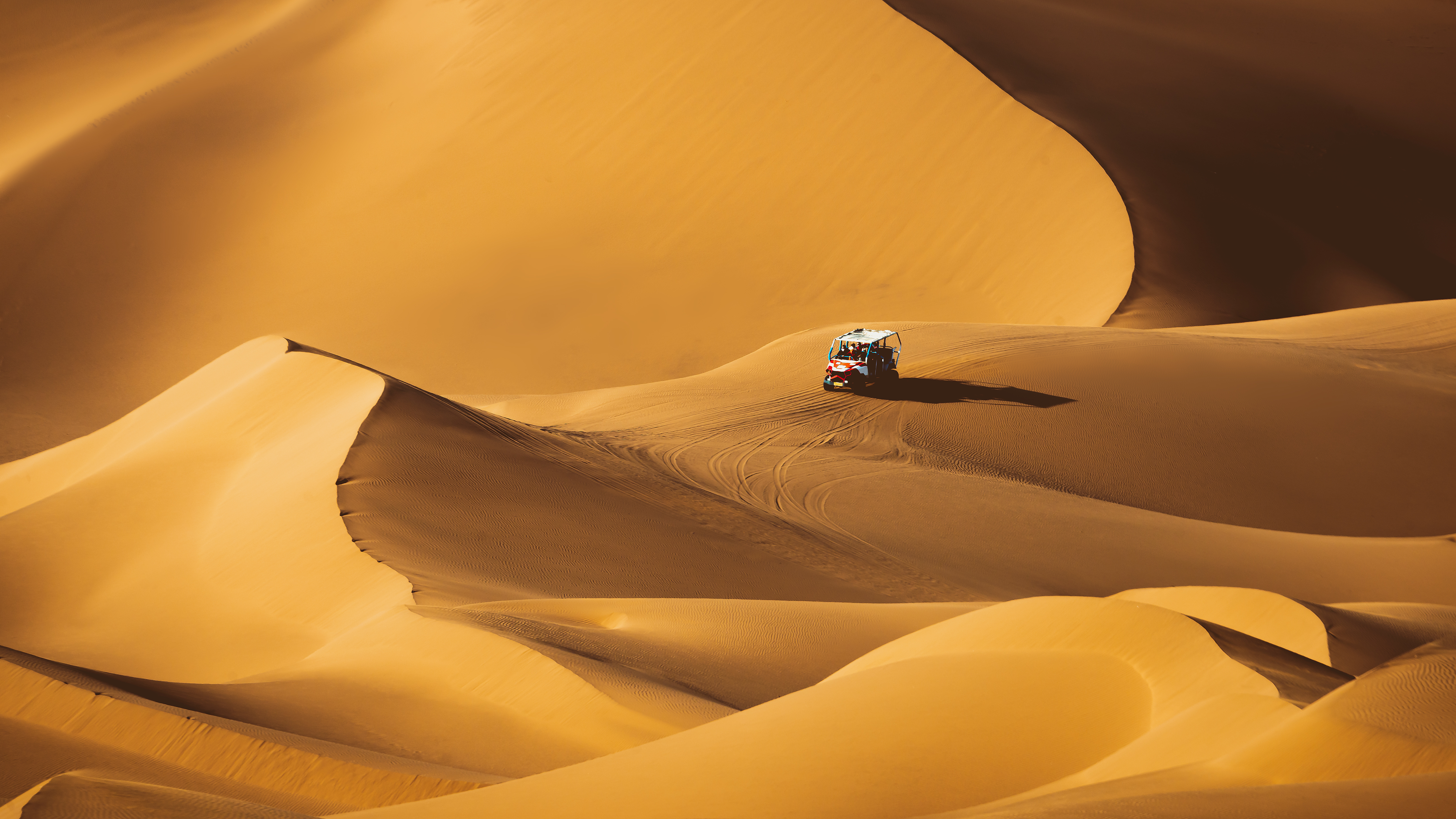 早餐后,一路北上翻越干沟前往“火洲”吐鲁番。吐鲁番是古丝绸之路上的重镇,东西方文明和宗教在这里交织。下午我们进入“中国最美的羽状沙漠”-库木塔格沙漠,沙漠位于罗布泊北缘,是世界上距离城市最近的沙漠,是中国八大沙漠之一。太阳快下山时,我们给大家安排了沙漠驼影拍摄。在金色夕阳下,一队驼队走沙漠上,美仑美奂。