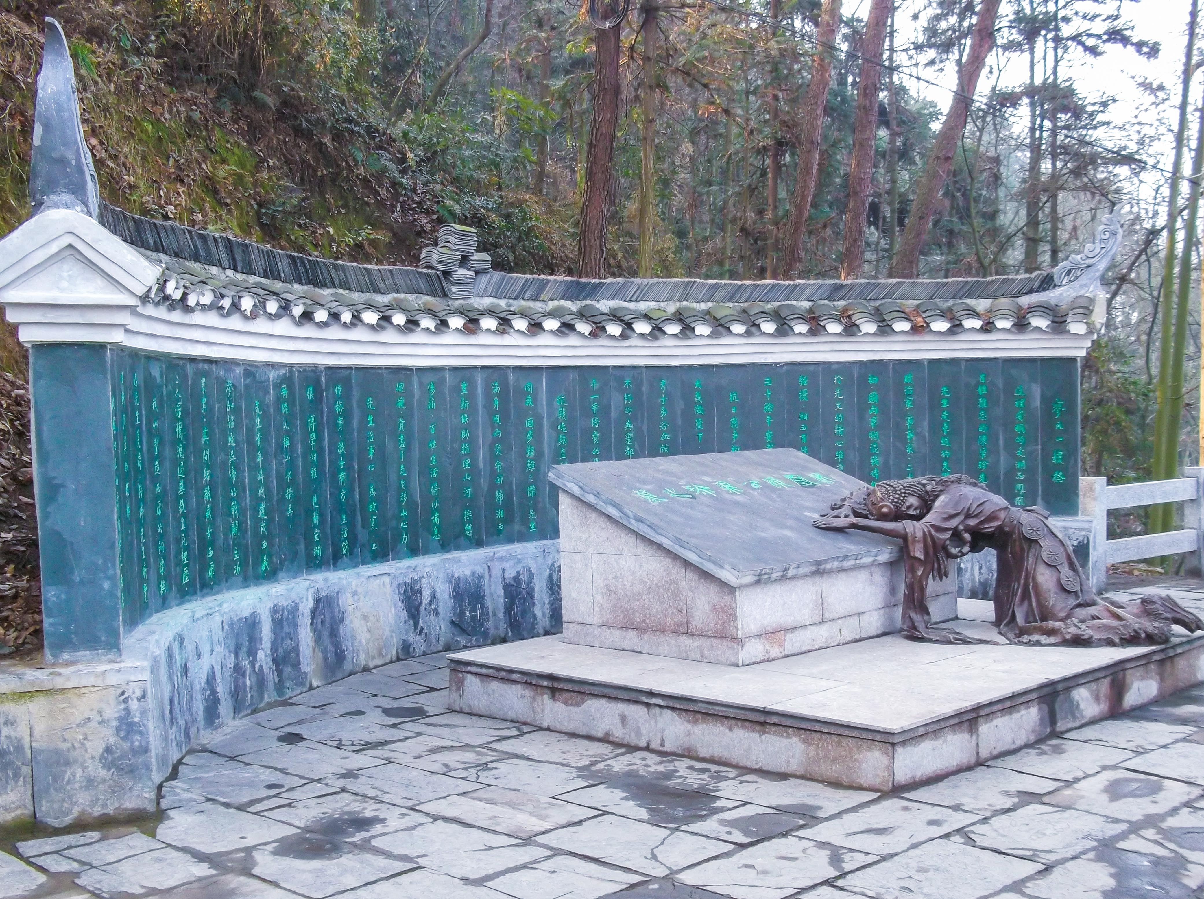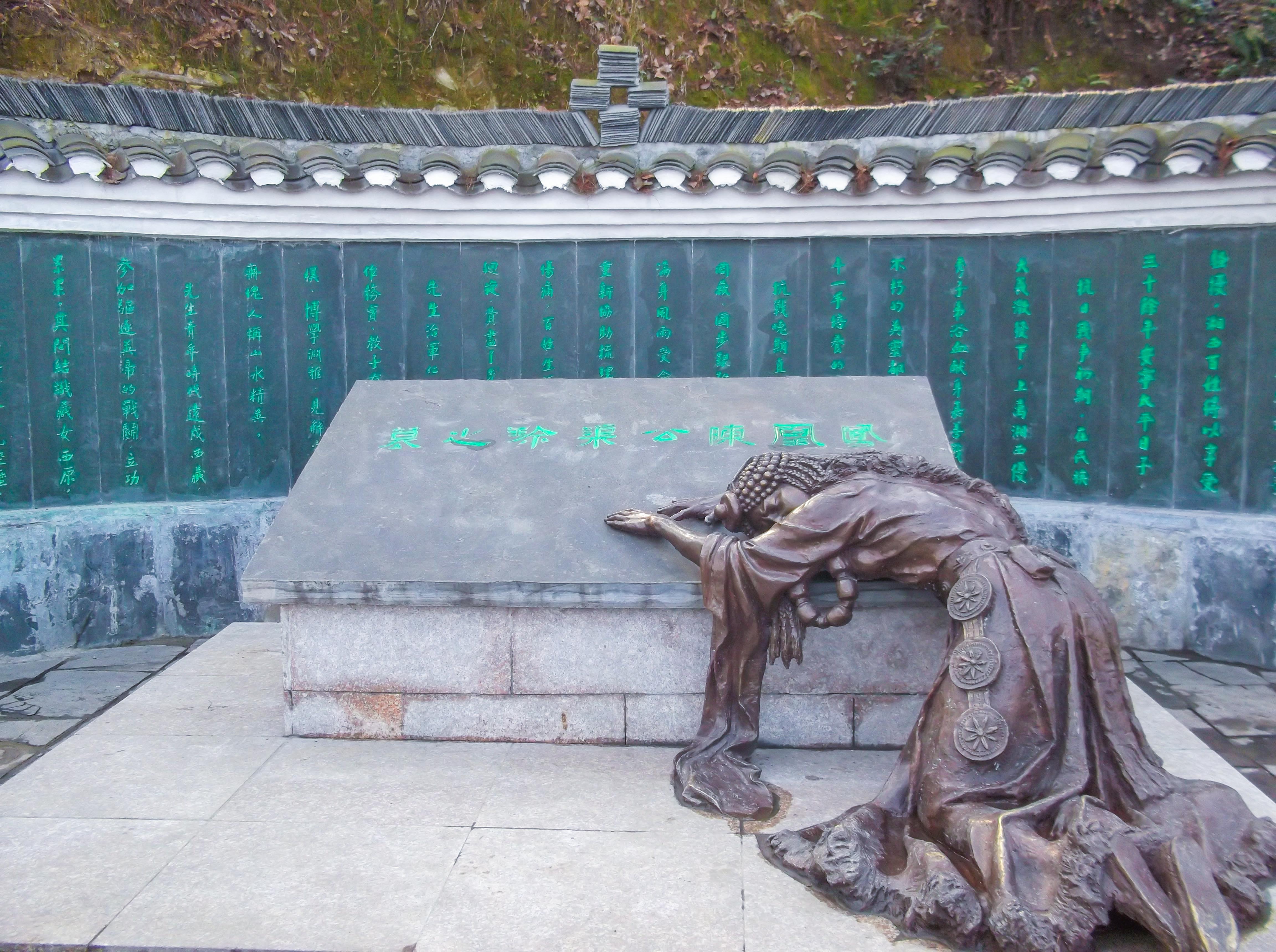 陈渠珍墓在沱江边上南华山。这座陵墓是黄永玉设计的。与一般墓不同的是,墓前还有一座藏家少女西原的铜像。西原在陈渠珍墓前抚棺而眠,永世相偎。