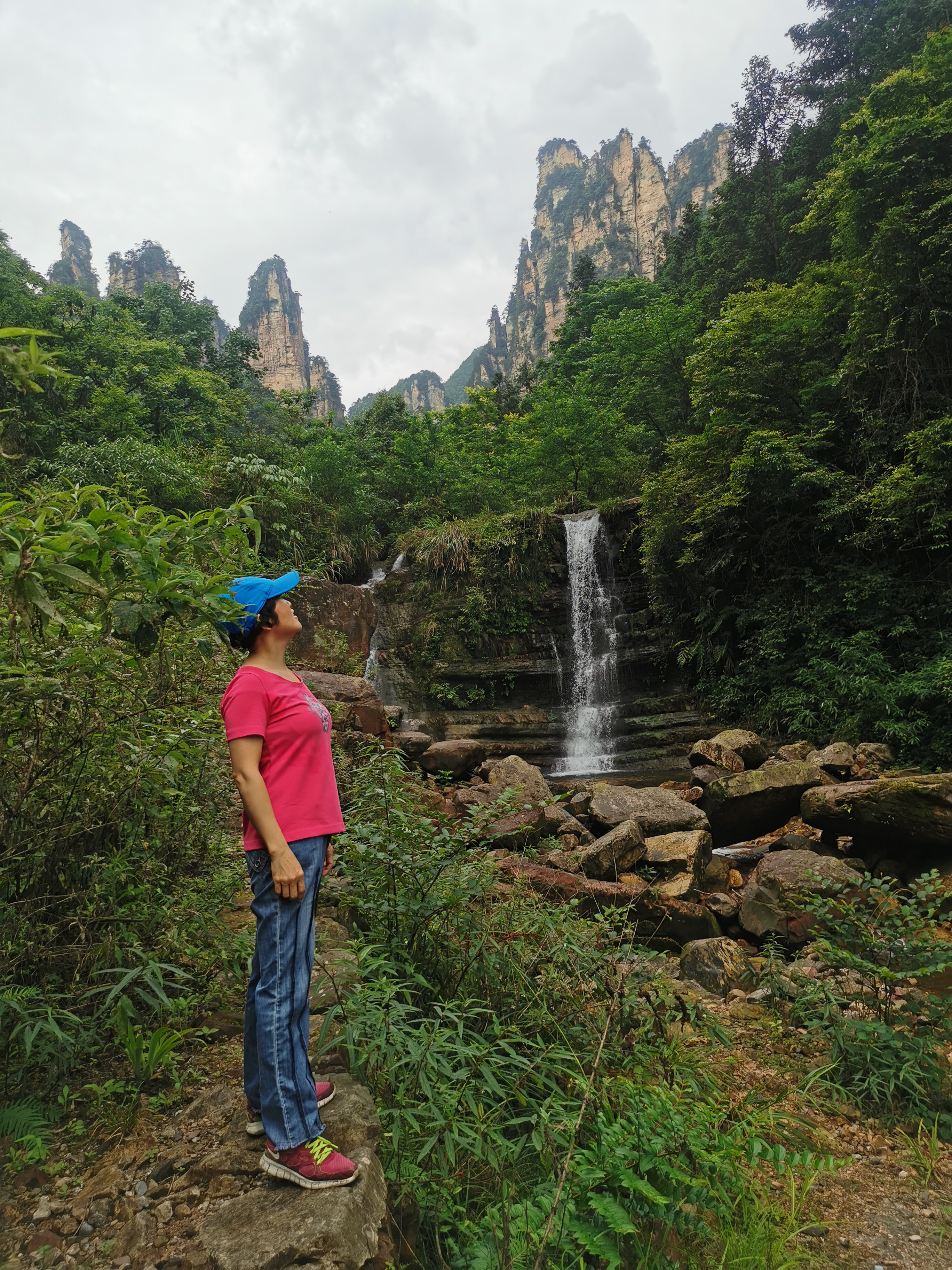 从清风峡取小径进入几乎无人涉足的杨家界后山,观赏那独此一家的“天柱山”,独此一片的飞流直下