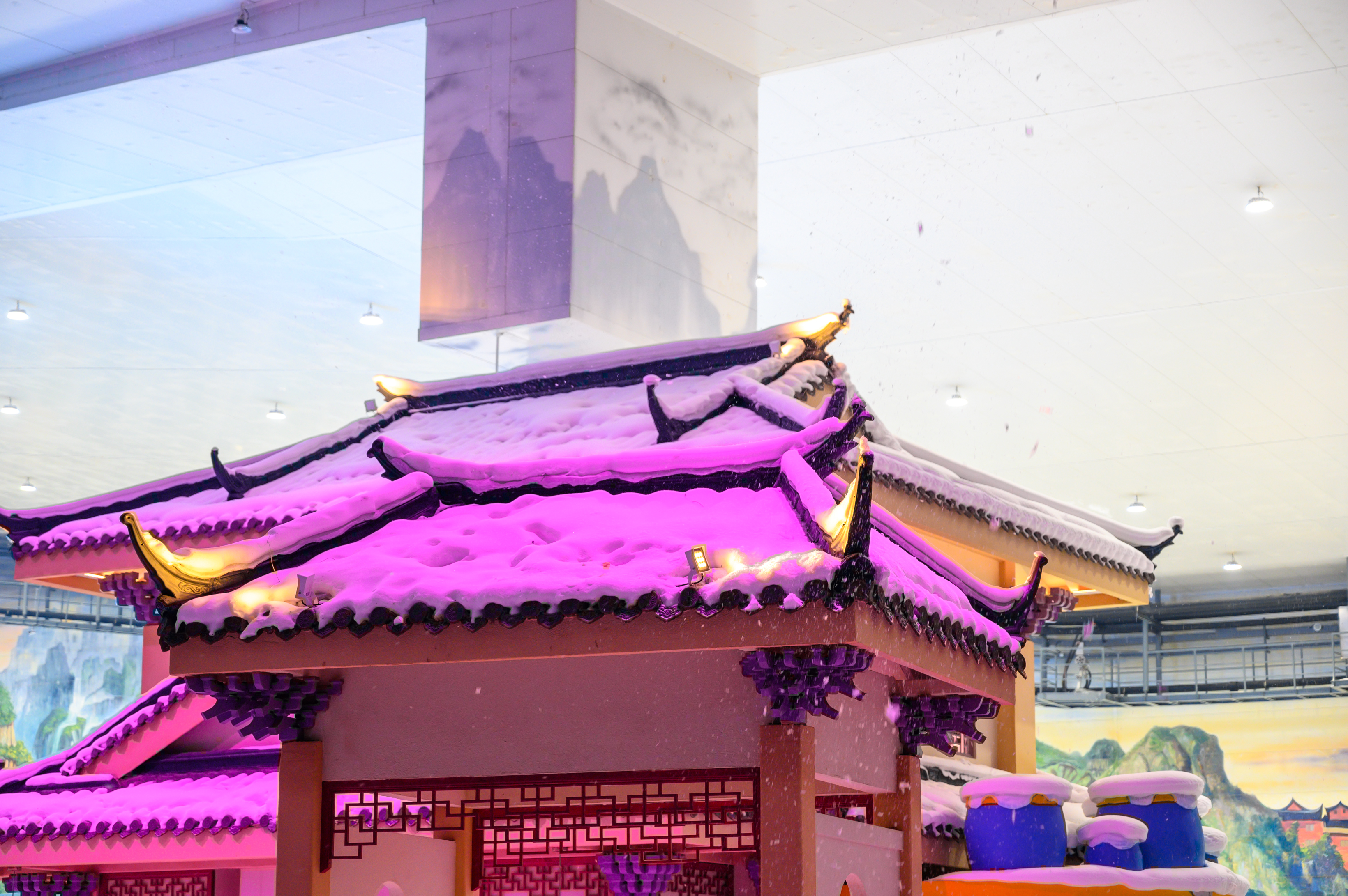 雪乐园的外形设计以莲花为灵感,恒温零下5℃的冷区则是以天台山文化为基础,并引入了天台山的传说故事《刘阮遇仙记》,由此而打造了五大特色游玩景观,分别是九崇望、昆吾山、遥光里、浔潭和川伊地,从名字间已经感受到了这里的仙气十足。