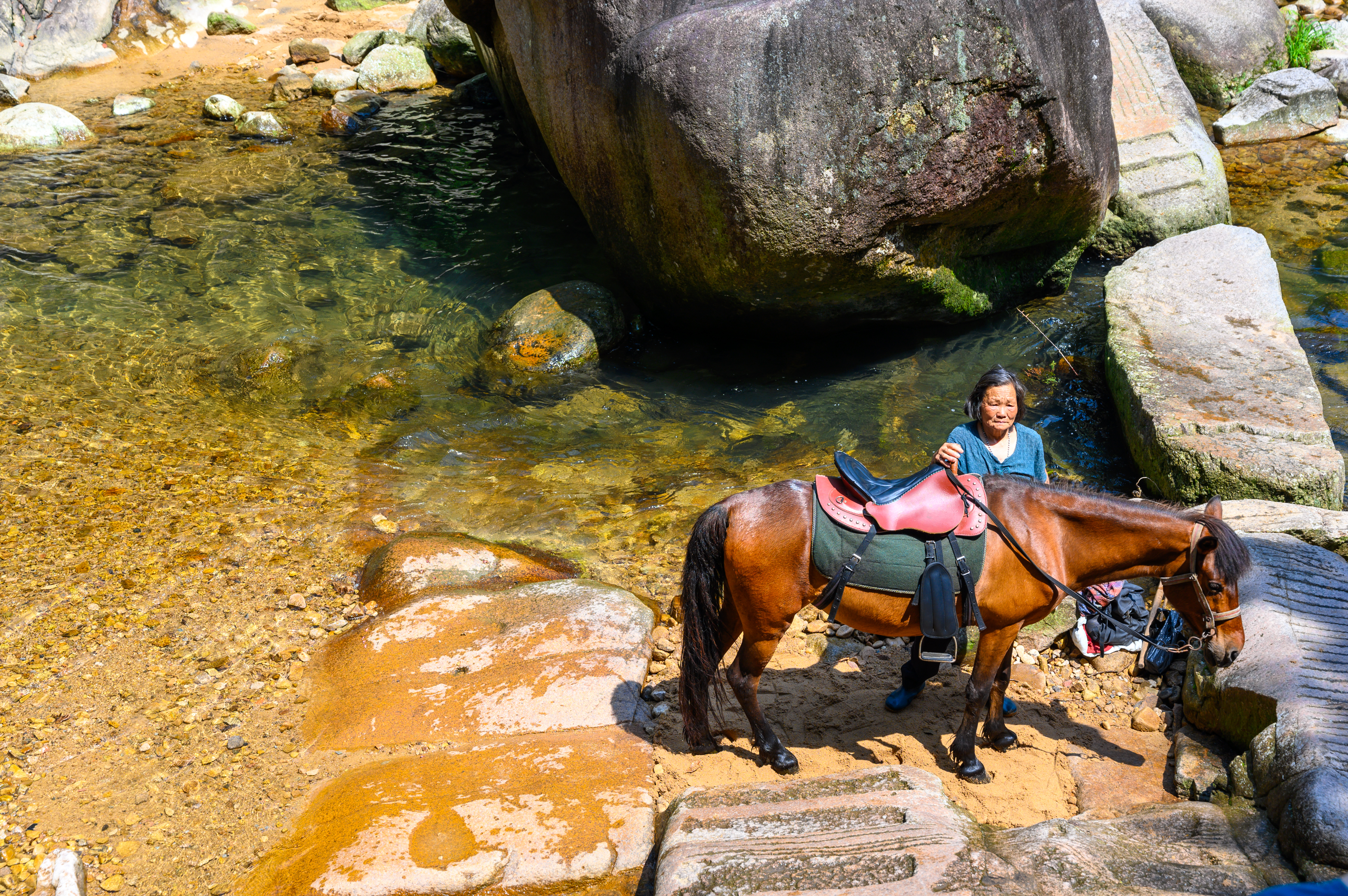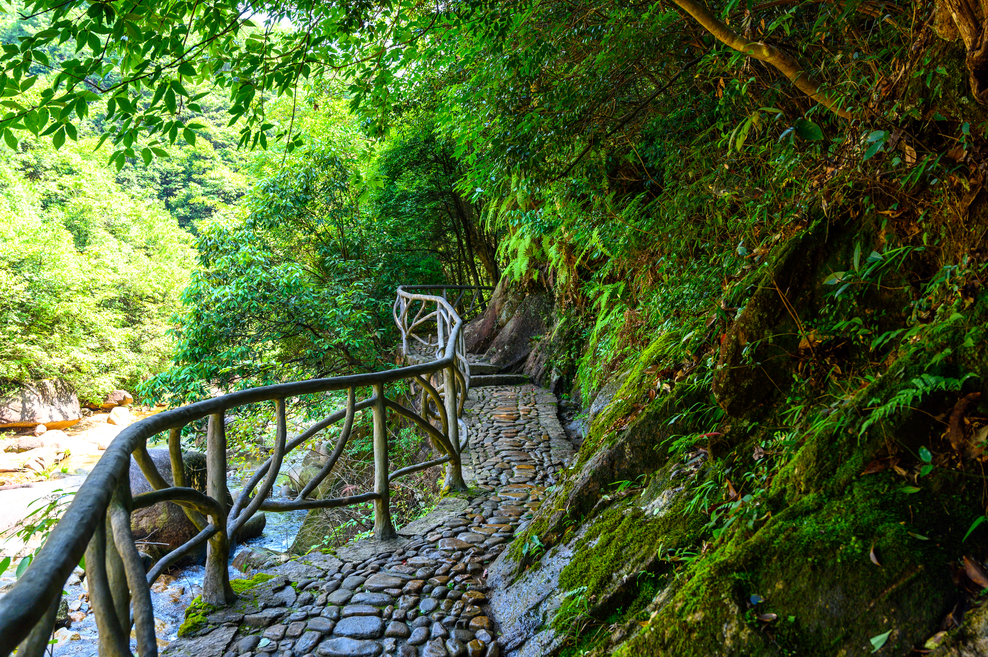 沿着山间小道慢悠悠的走着,一旁是潺潺流动着的溪水,四周则是茂密翠绿的丛林,这种惬意舒适感也只有置身其中方可体会了。这里最适合的也是慢游,就如缓慢的流水一般,一步一景,移步换景,心情自然怡悦开来。