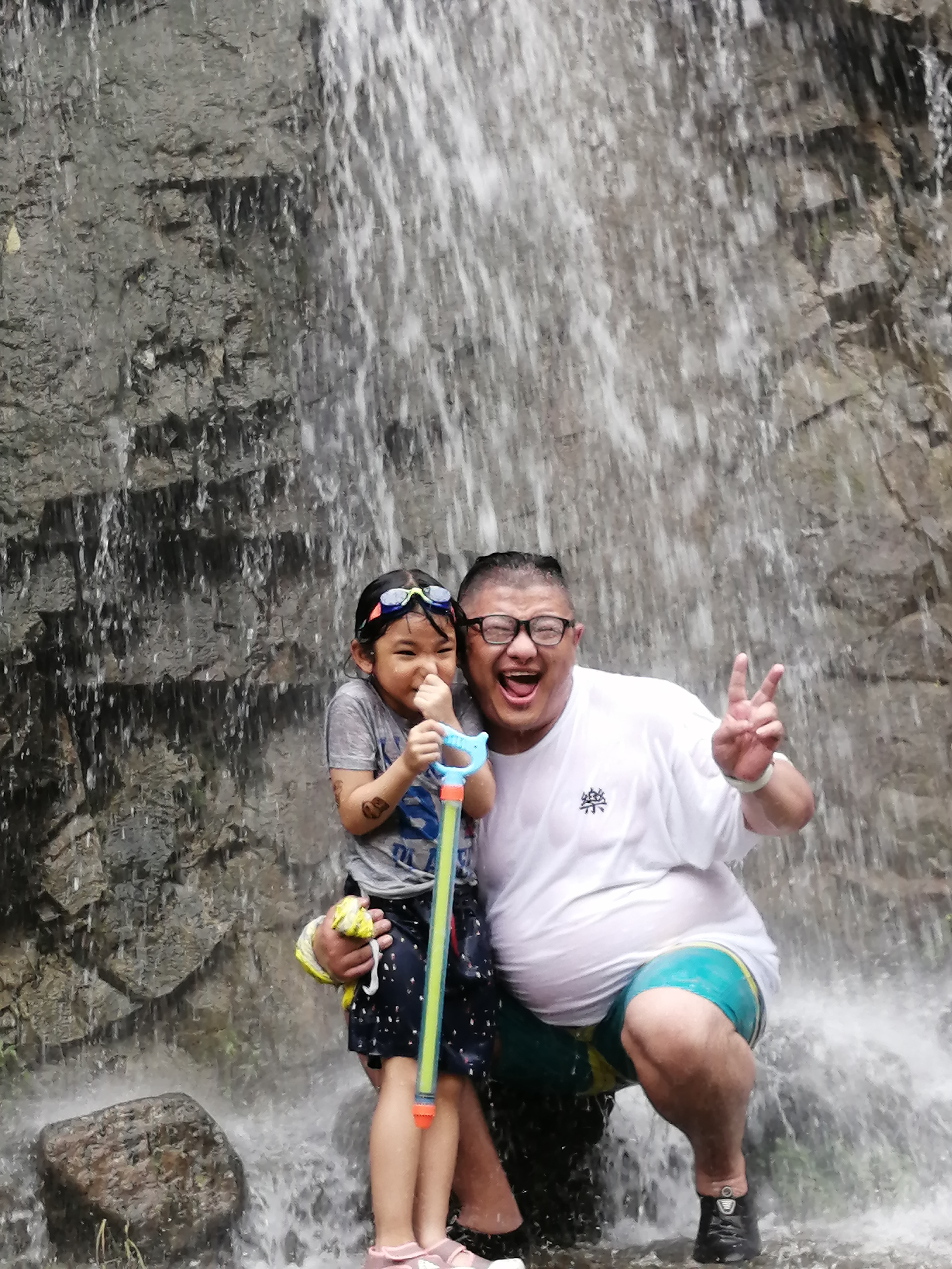 一路沿着溪水溯溪而上,眼前出现了一条大瀑布,大朋友小朋友兴奋地跑到瀑布下面冲凉,炎热的暑气就这样被冲走啦~