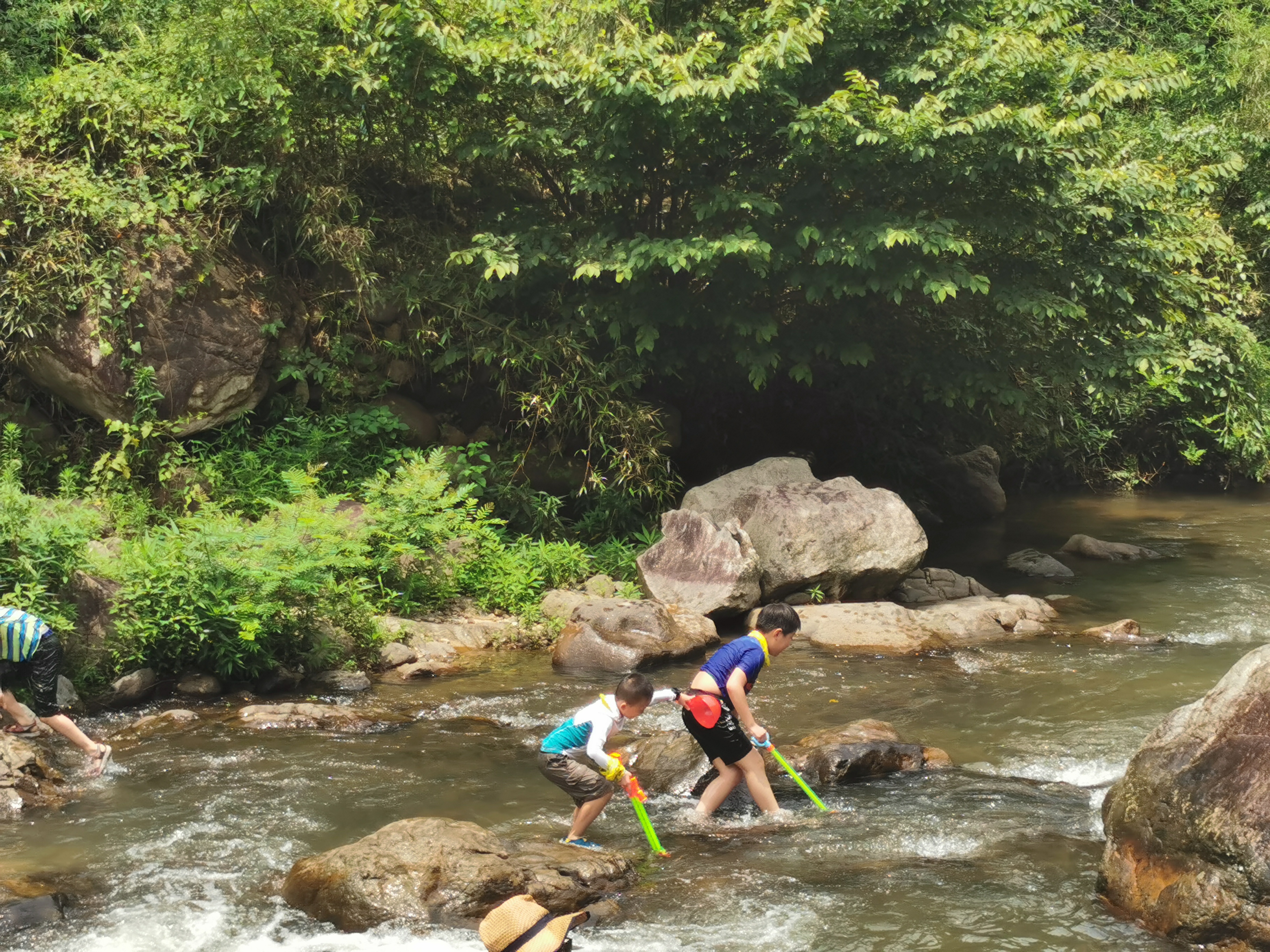 小九寨的溪水特别清澈凉爽,大家迫不及待打起了水仗,玩得不亦乐乎。看到小朋友玩得如此尽兴,家长们也纷纷加入水中大战。