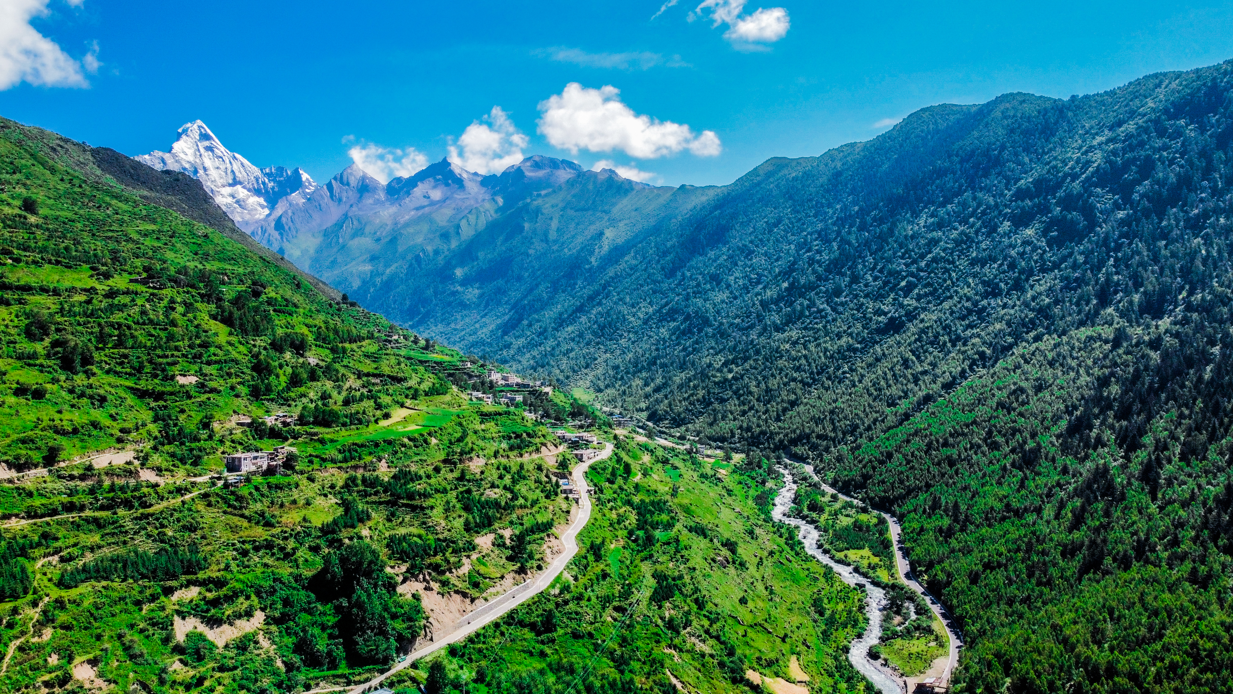 小镇上有一条岔路可以往上爬,你会发现越往上走景色越美,以上帝视角来看小金,真美好~