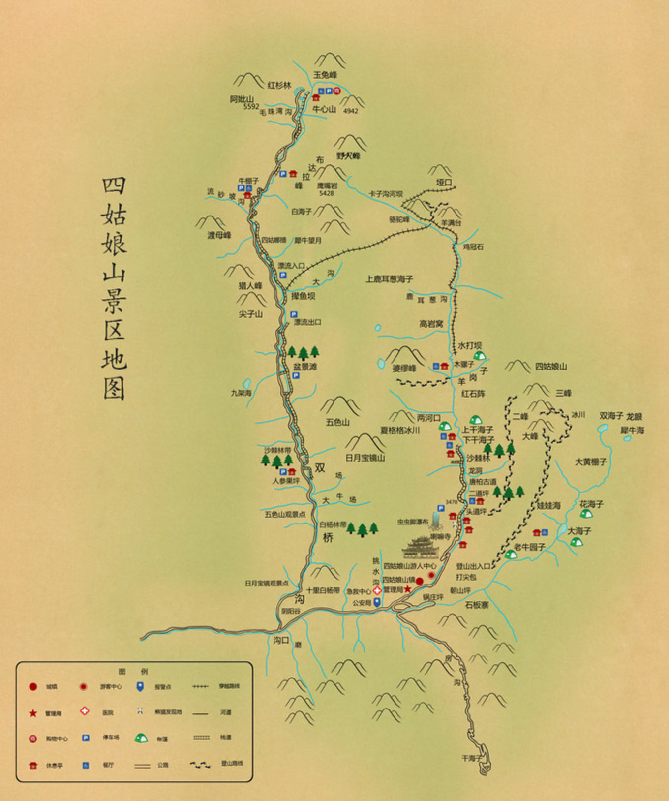 四姑娘山包括三条沟:长坪沟、双桥沟、海子沟,三条沟各有各的特色。