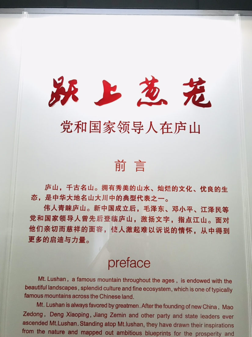 庐山是千古名山,在这座既可以栖居又可以游览的人文圣山上,历代文人墨客、名人雅士或探幽访胜、巡幸颁赐、主政斯地,或传教布道、隐居讲学、消暑纳凉,在庐山不仅留下了众多名胜古迹、诗词歌赋、摩崖石刻、故事传说,还留下了许许多多鲜为人知的艺术珍品。庐山以其历史悠久、中西文化交融、文化遗产丰富的显著特征成就了世界文化景观的历史荣耀,闪烁着中华民族文化的光彩。