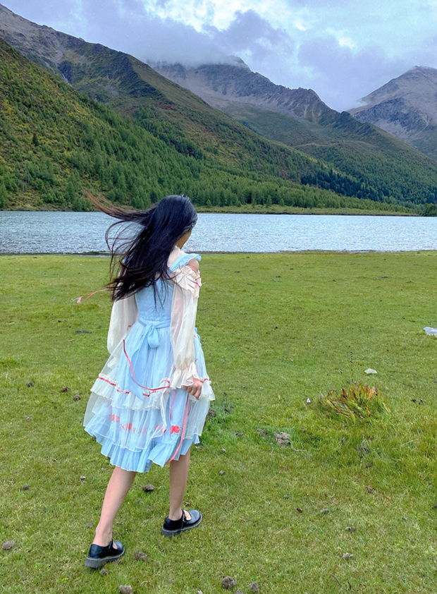 黑甜一觉,早上自然醒醒来,领队已经准备好了早饭。太阳正好,我们换上带来的Lolita和汉服出门和牛群拍照。