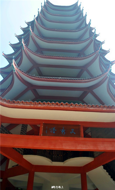 再行大约二十分钟左右就到了文秀塔,塔虽然看似新修,但是仿古的模样十分逼真,类似于雷峰塔旋转、盘旋而上,上了塔顶的最高层。