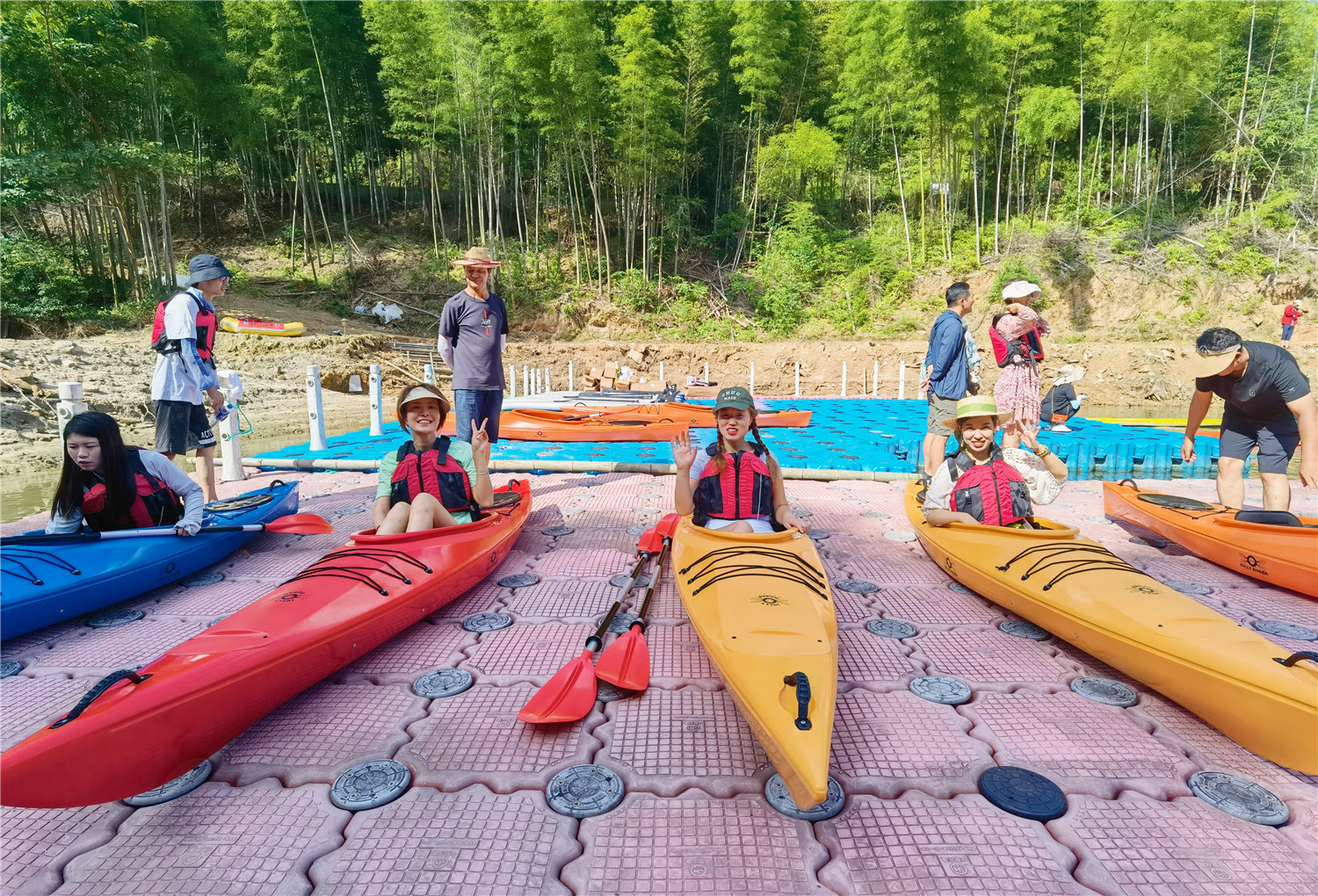 云灵湖是一个四面环山的美丽湖泊,就像一位藏在深山之中的仙女,清澈见底的湖水碧波荡漾,看一眼就会爱上她。不由得让人想起那首童年的歌“让我们荡起双桨,小船儿推开波浪”,畅游在仙境般的云灵湖,心情就像这蓝天白云般通透爽朗。坐在湖边什么也不用想,让思想放空,好好的享受属于自己的这份浪漫时光。皮划艇简直太好玩了,操作非常简单,一学就会,湖边会有教练现场教学,好久没有领略如此美的湖光山色,大家玩得好开心,久久不愿离去。