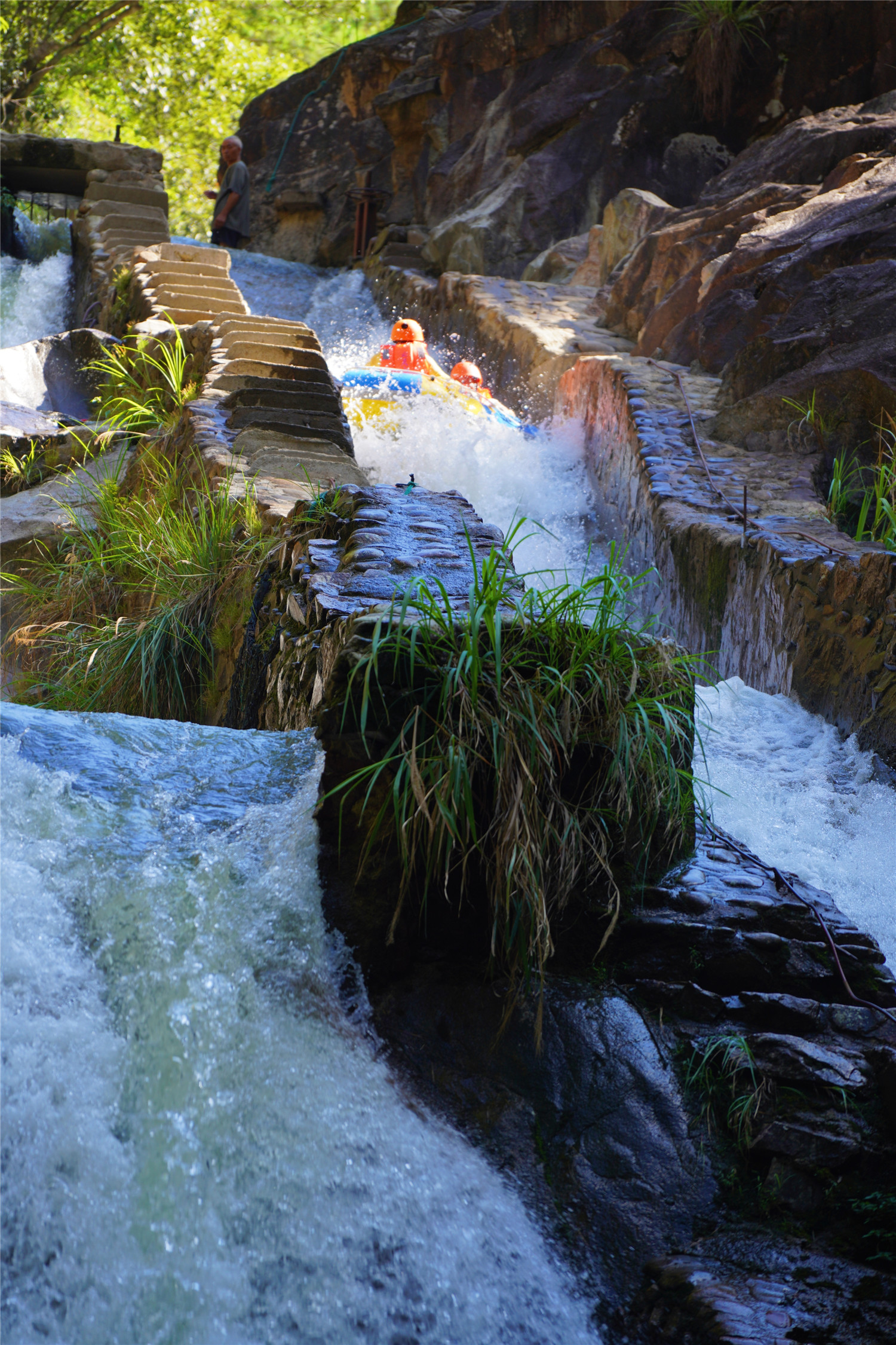 漂流出口的地方有儿童嬉水乐园,小朋友可以在这里玩。漂流可以全程,也可以半程漂,自由选择。有免费拖鞋,存衣服的地方,可以冲洗沐浴,玩的时候最好带一套换洗衣服,因为漂流结束就会变成落汤鸡。
