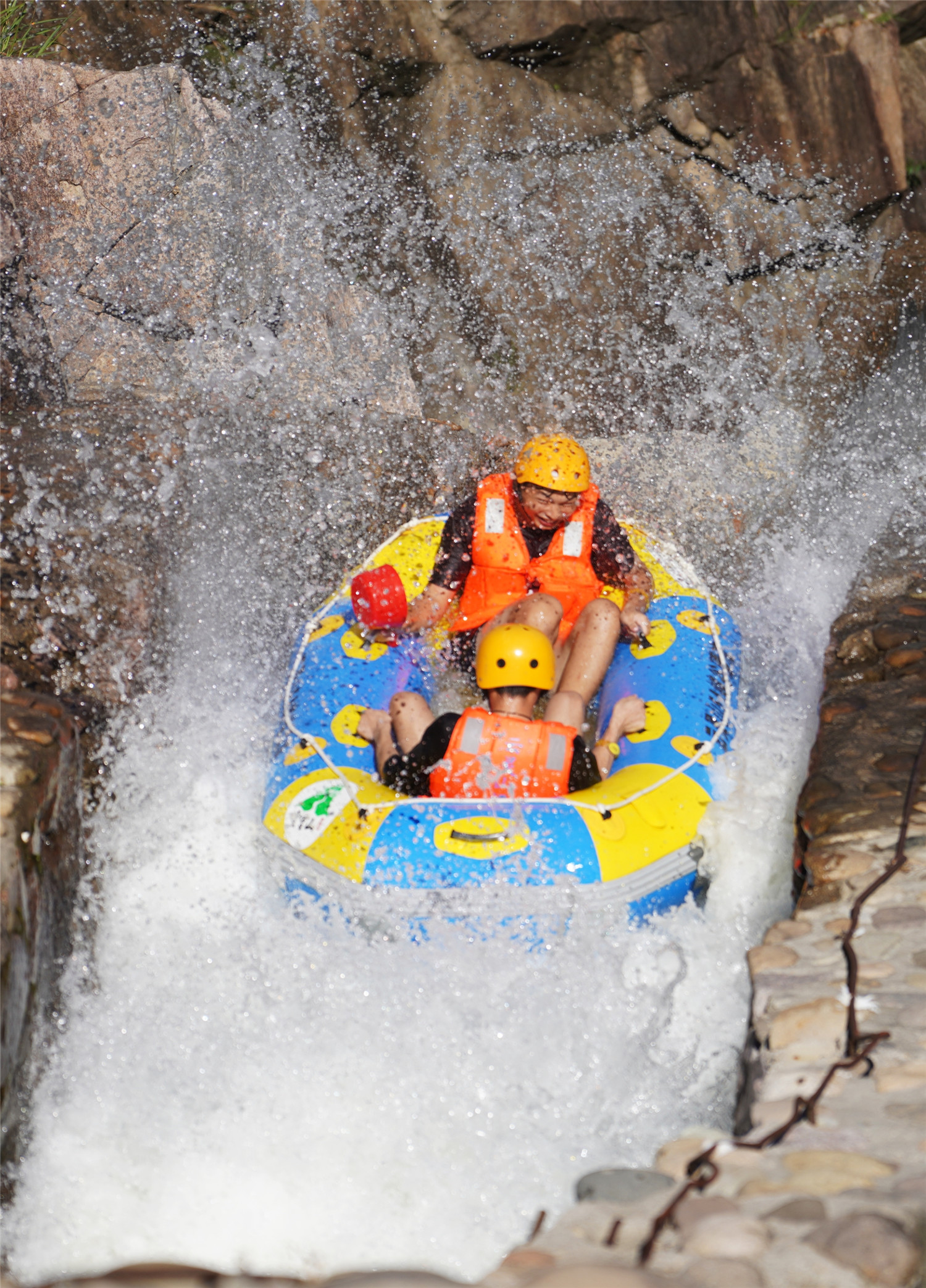 东南第一漂的云灵山峡谷漂流,玩起来非常刺激,从落差29.8米的峡谷中激流而下,此起彼伏的尖叫声响彻山谷,在速度与激情中,感受自然的雄伟与壮阔,2个小时的水中漂流更是爽透整个夏天,嗨玩云灵山就此拉开序幕。全程5.2公里,这里的漂流非常适合15岁以上的孩子玩,前半程刺激惊险,峡谷弯多,中间还有戏水的地方。后半程比较平缓,戏水的地方多,可以打水仗。