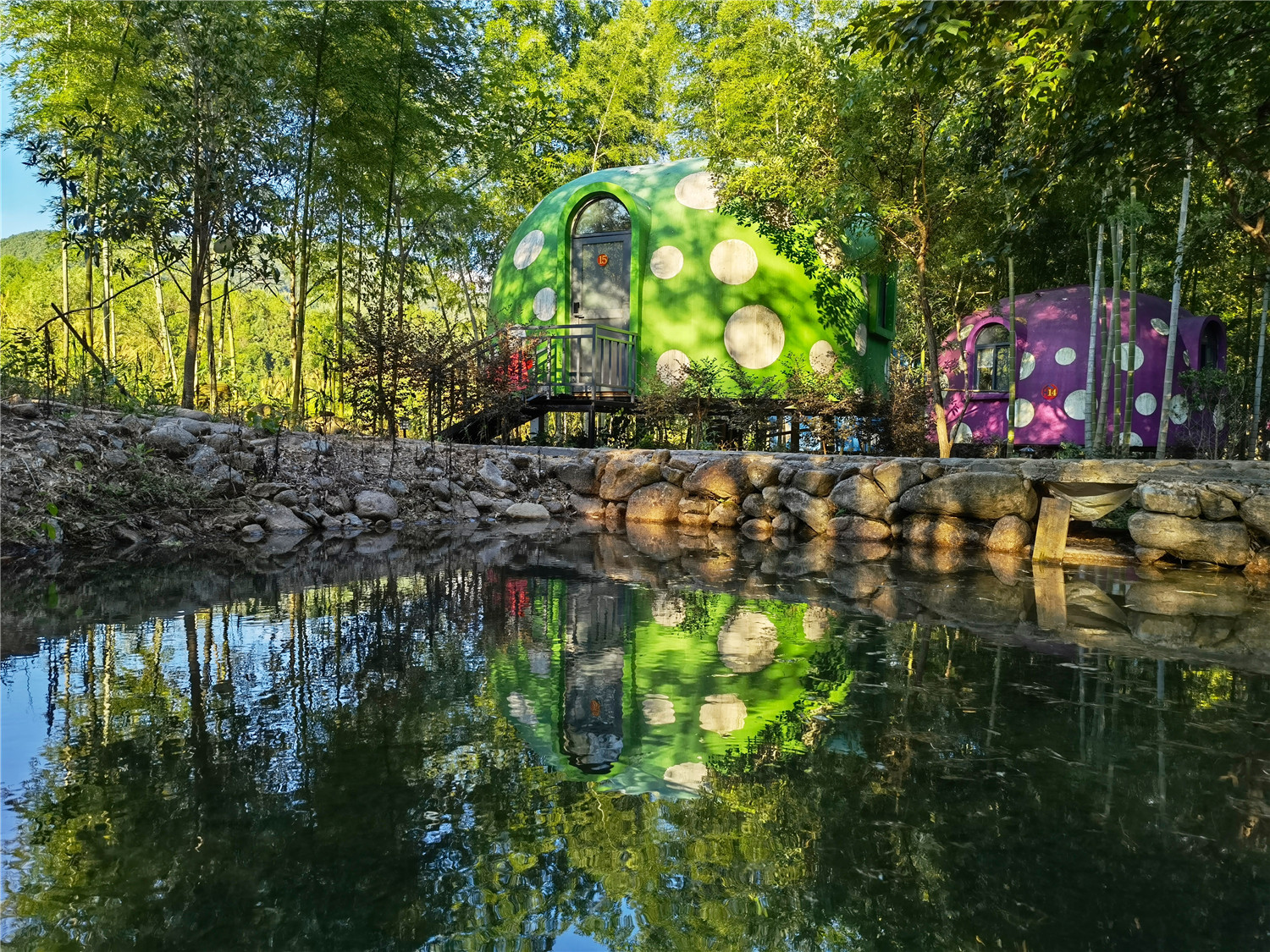 蘑菇屋,小朋友的最爱。五颜六色的各种小蘑菇屋,隐藏在浓密的竹林中,神秘又可爱,很受小姐姐们喜欢。蘑菇屋周围都是竹林,晚上住在这里就像住在迷宫一样,一朵朵可爱的蘑菇就像是丛林中长出的小蘑菇,从蘑菇屋的窗户可以与旁边的邻居对话,就像穿越到童话世界一样,是不是很有意思啊!孩子们也可以在这里捉迷藏,找起来可不容易哦!房间里面是榻榻米,可以一家人在一起开心过暑假,晚上还可以透过竹林看到满天繁星。