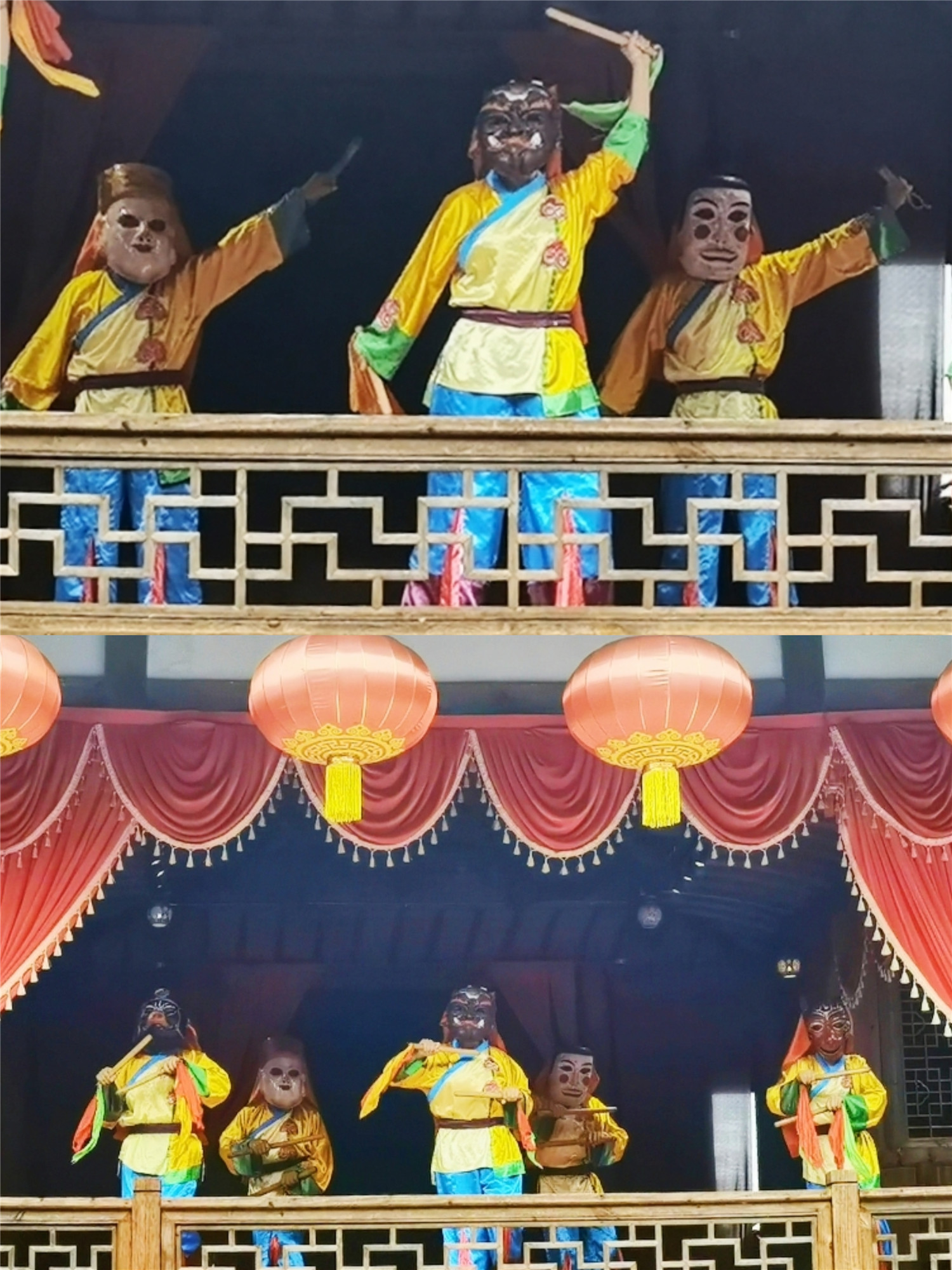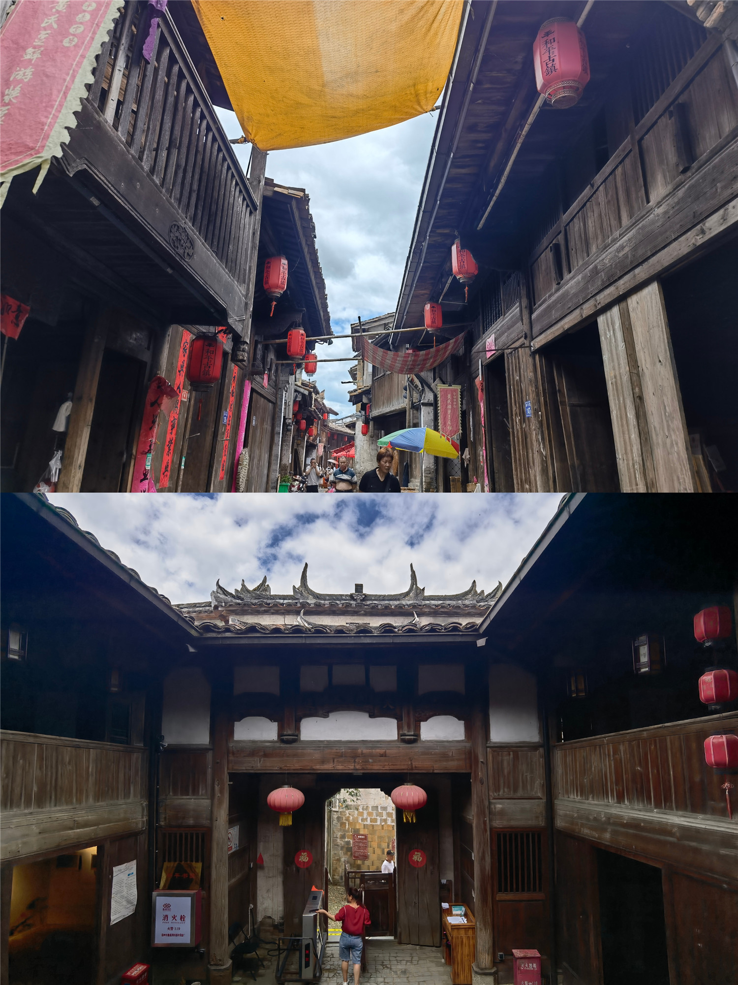 和平古镇是一个全国罕见的城堡式大村镇,距今已有千年历史,村子里保留了完整的古街巷和古建筑,历史文化积淀深厚,许多传统民俗都传承下来,有傩舞表演、三角戏、民间曲艺、节俗、婚俗以及游浆豆腐、织造腰机布等等。和平游浆豆腐的制作工艺堪称中国一绝,到这里必须吃一碗再走。午饭在和平饭店品尝豆腐宴。饭店就在古镇外的和平文创园,非常好找。