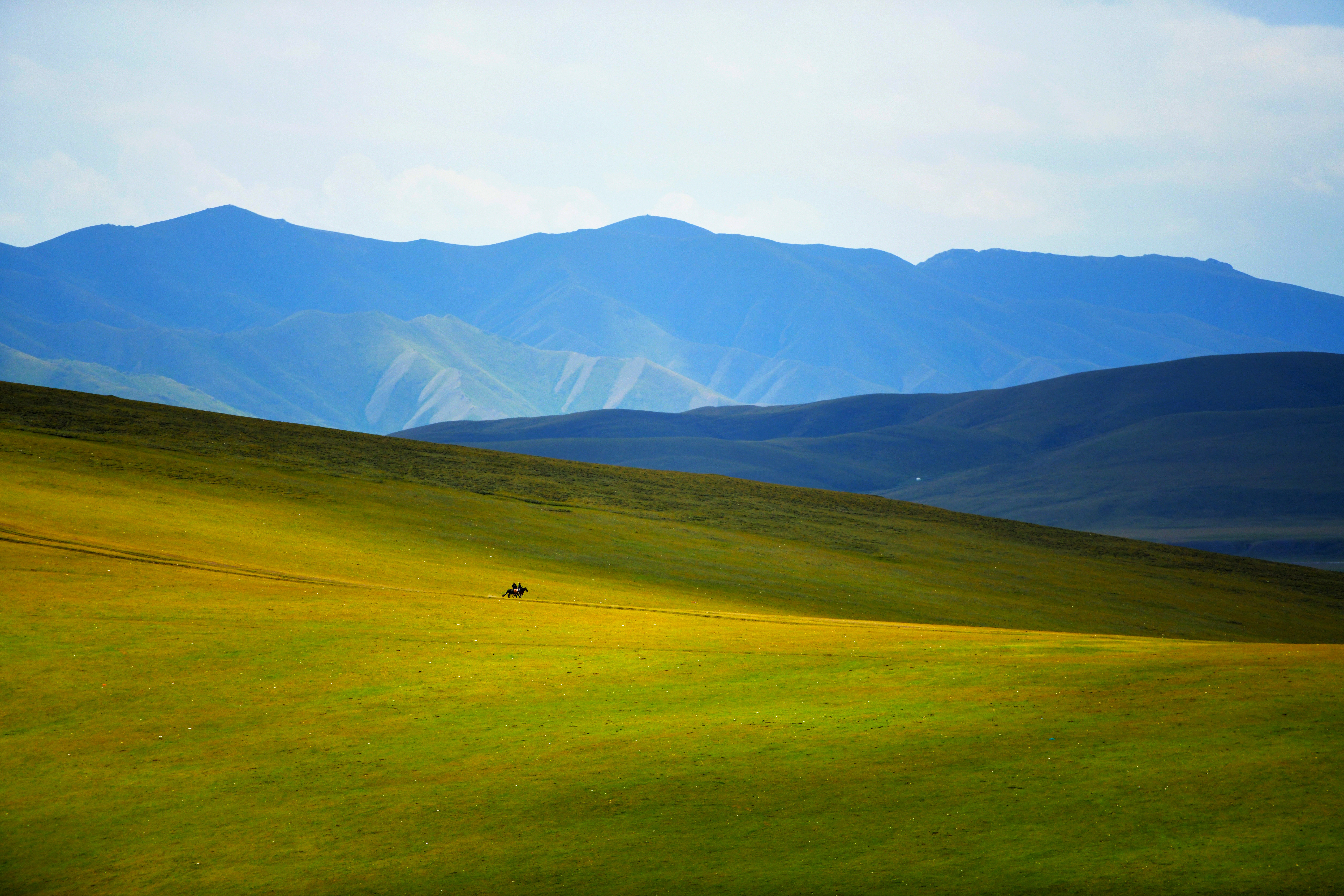 在独库公路上向前极目远望,尽头是那牧民策马扬鞭的场景,他也在极目远望,他在留心远方的牛羊与草地。