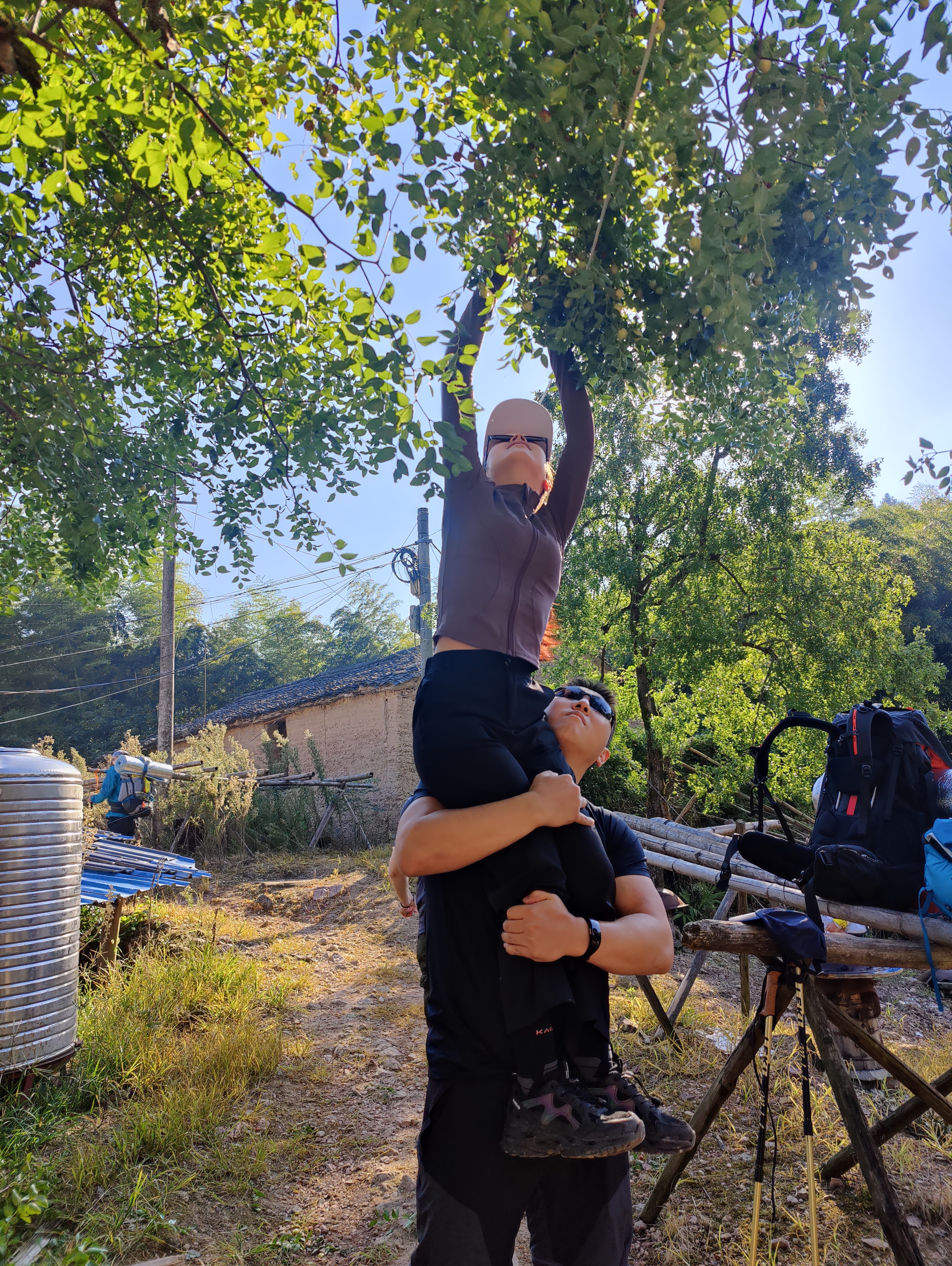 看完日出,回上平吃早饭,然后整理装备,拍集体照,8点开始下山的行程。虽说是下山,但是开始还是要向上爬一公里左右,部分路段和早上看日出的路线重叠,好在这段不是很虐。下山的路和上山的路有些区别,上山的路较为宽敞,是村民外出的主要途径,下山的路更原始,虽为下山,却更加难走,中间很长一段杂草丛生,穿短袖短裤的要遭罪了,稍不注意就会被茅草划破皮肤。队伍里几个体能好的伙伴11点不到就到达了中午吃饭的农家,老早就听到有人在对讲机里问大家,是否要团购农家的杨梅酒,人多好砍价。到12点的时候,尾队的伙伴也到达了,而早早达到的小伙伴们,喝酒的已经围坐一小桌了,酒都斟上了,就等开饭了,出来玩开怀畅饮,美景加美酒,更是尽心,人间值得!